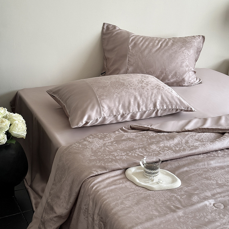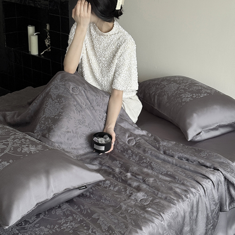 프랑스 자카드 100S Lanjing Tencel 여름 퀼터 4 피스 슈페리어 알몸 수면 쿨 에어 컨디셔닝 퀼터 아이스 실크 여름 퀼터