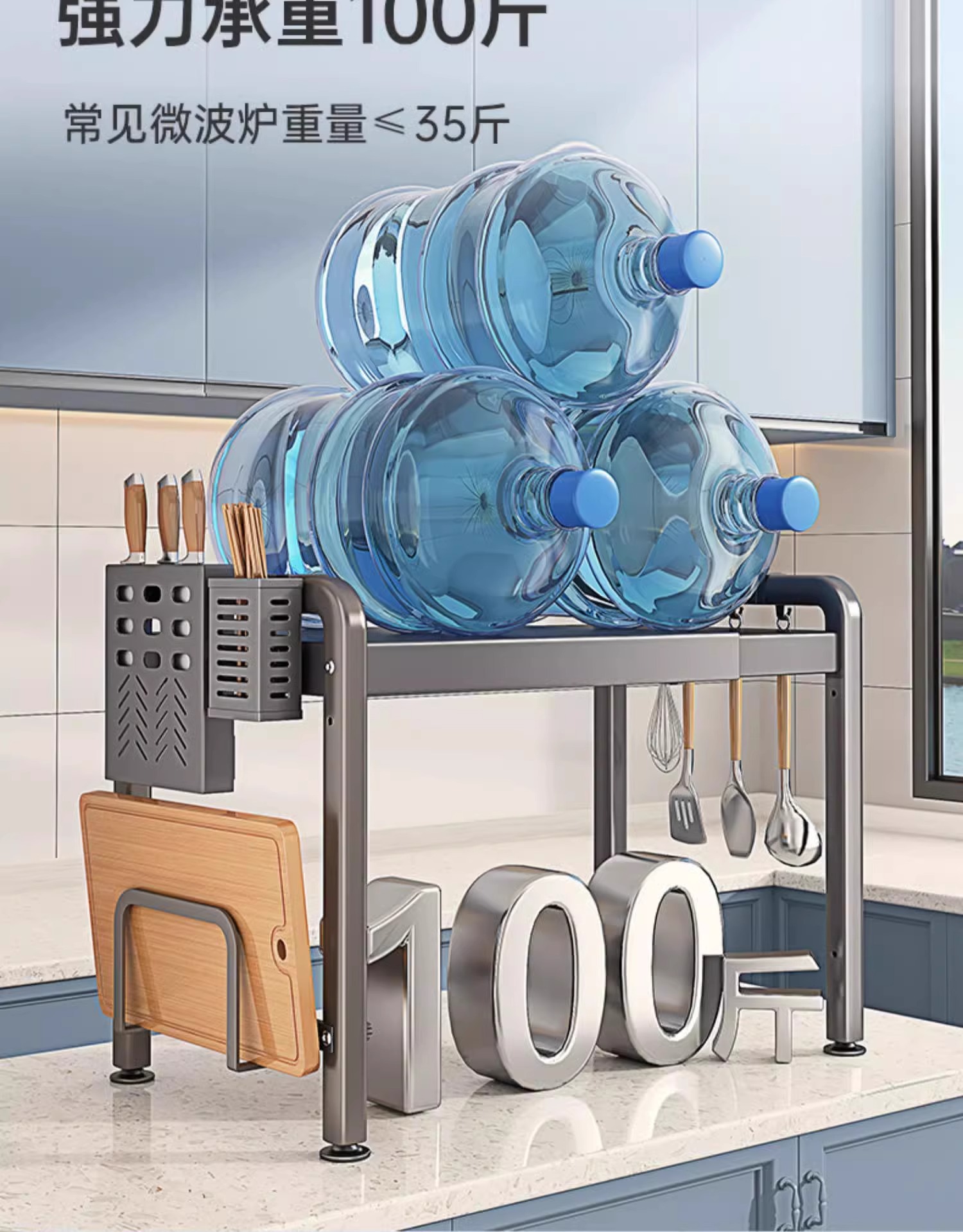 • 건메탈 - 2단 확장형 + 칼꽂이 + 수저통 + 도마 거치대 + 걸이*6