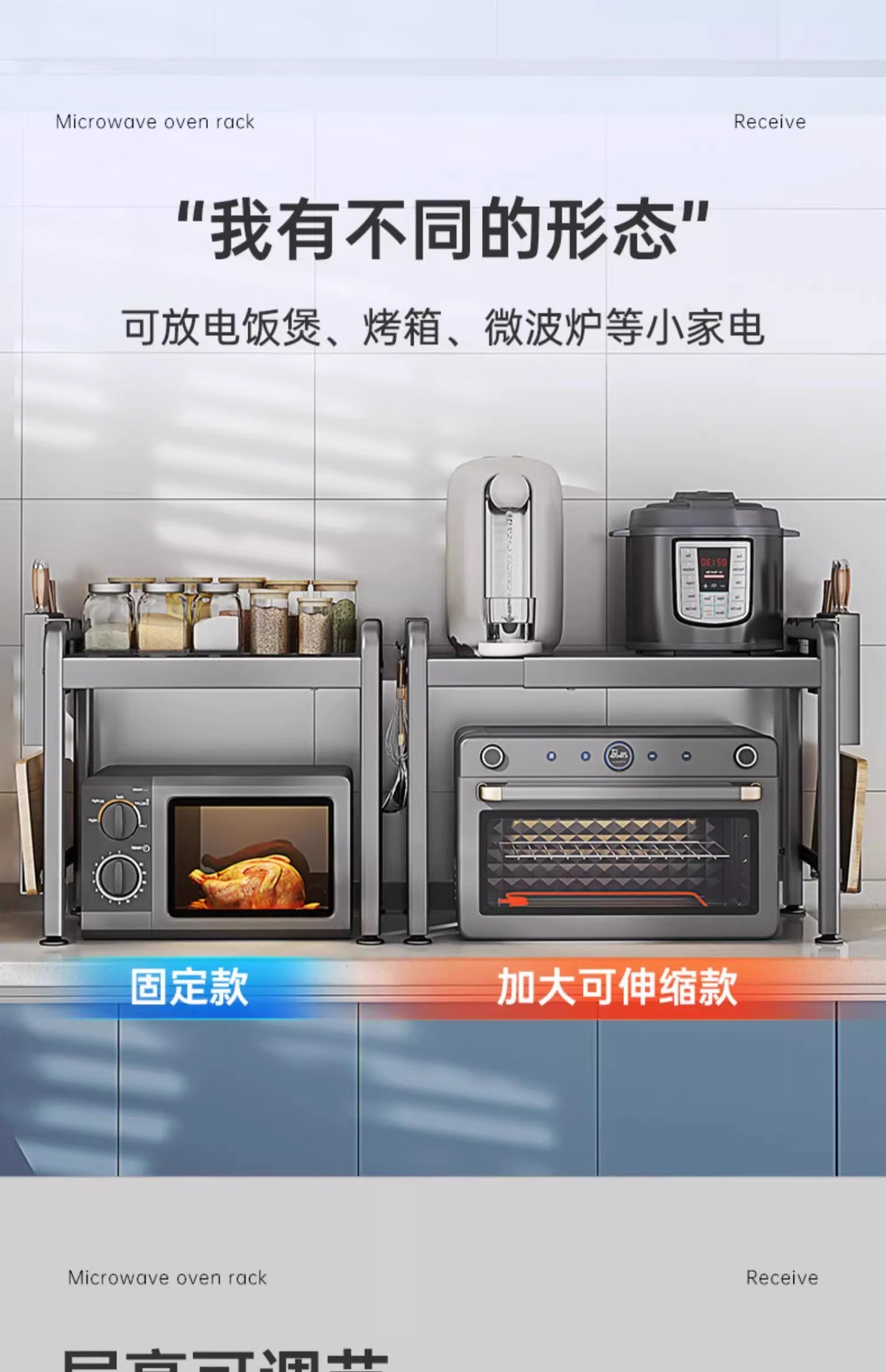 전자 레인지 저장 랙 주방 개폐식 테이블 탑 다기능 오븐 랙 가정용 전기 밥솥 냄비 통합 브래킷