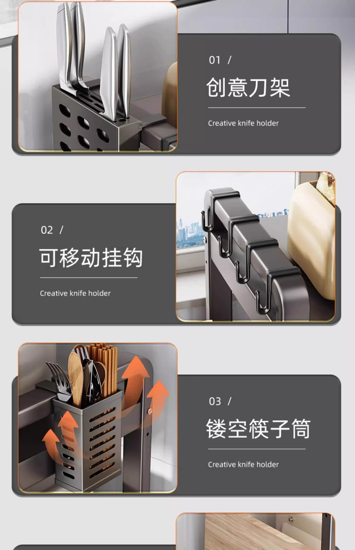 • 건메탈 - 3단 확장형 + 칼꽂이 + 수저통 + 도마 거치대 + 걸이*6
