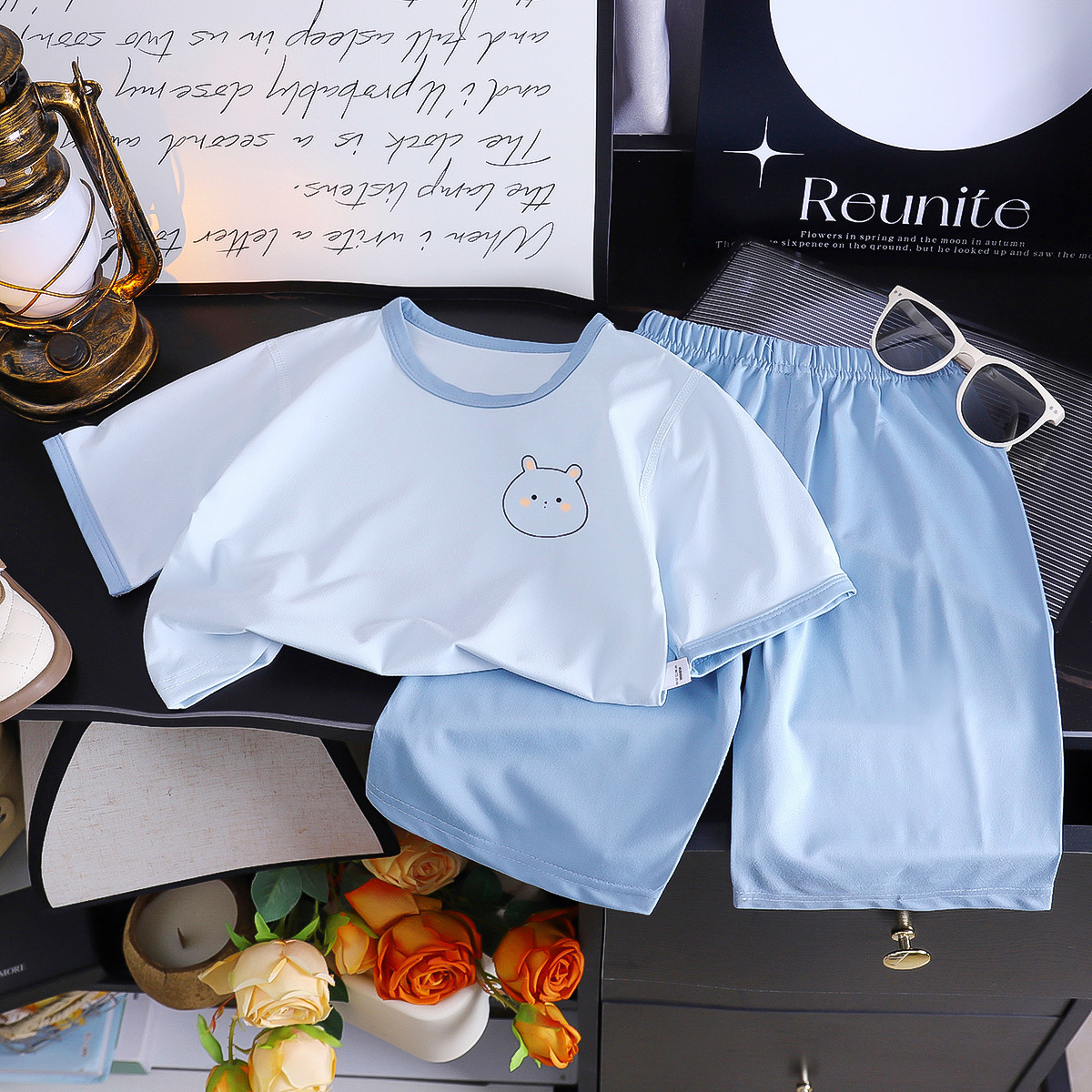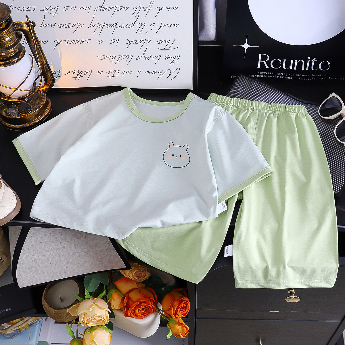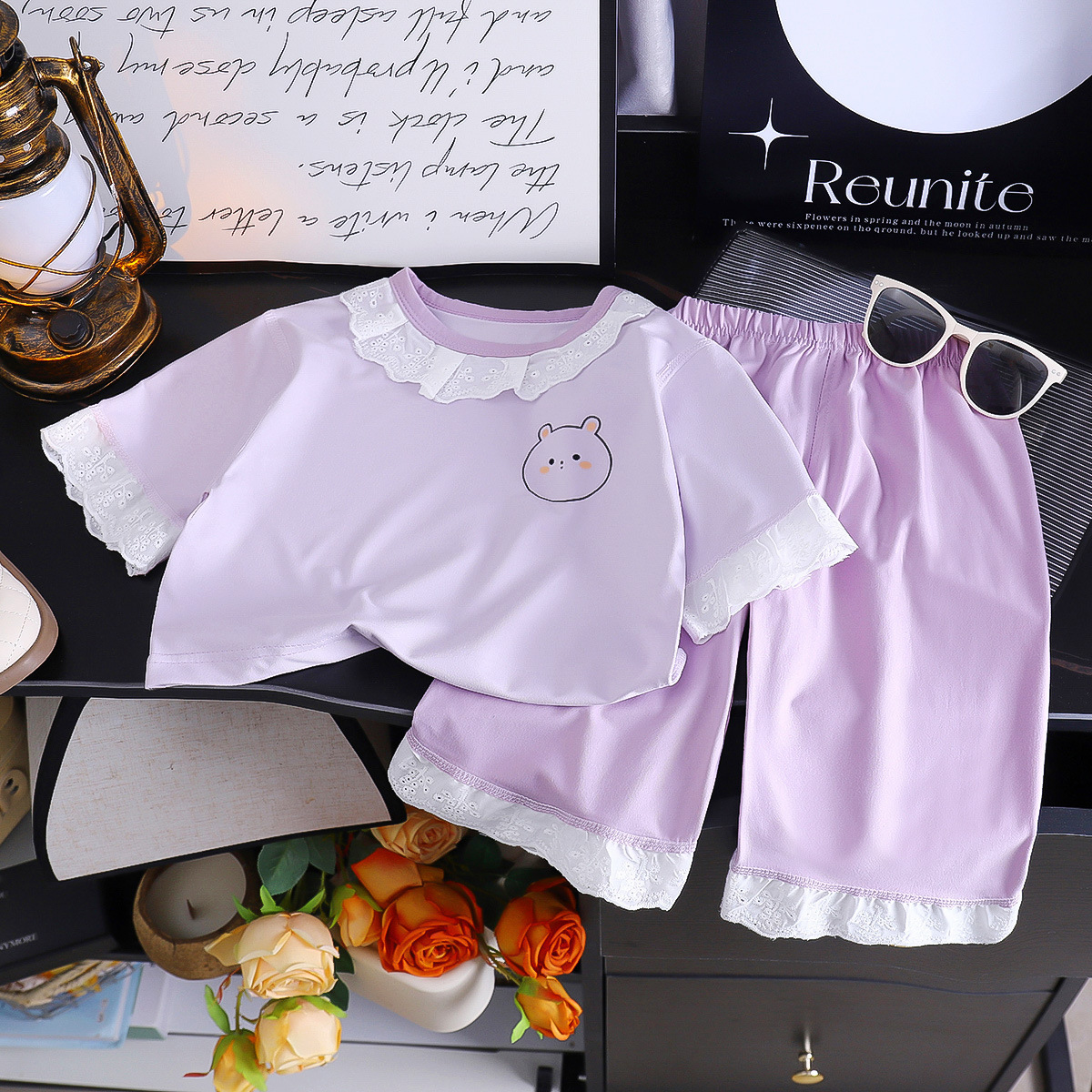 어린이 모조 면 파자마 소녀 자른 소매 바지 세트 소녀 여름 에어컨 옷 외부 옷 캐주얼 홈 옷스토어 가기