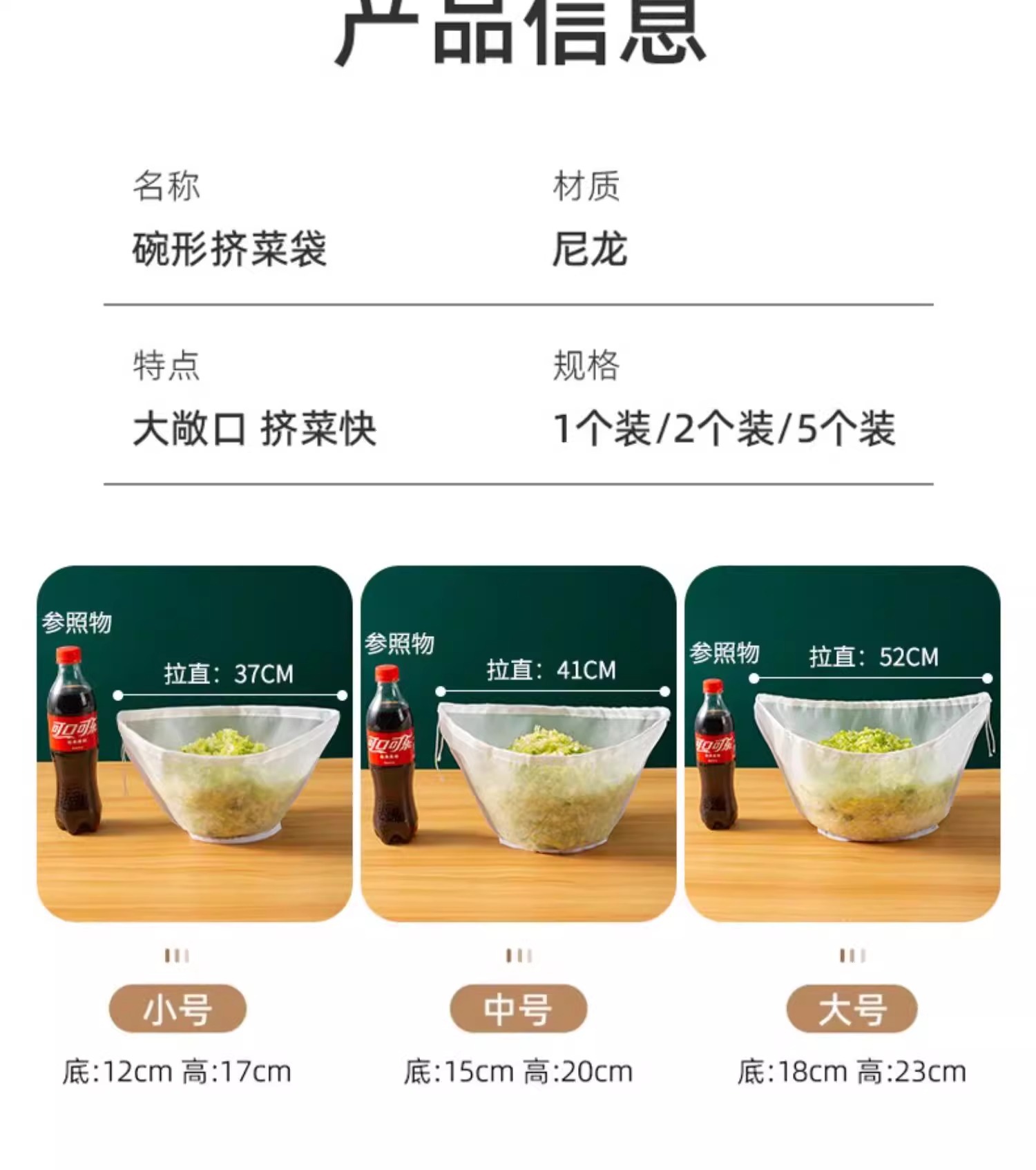 • 그릇 모양의 야채 짜기 가방⭐소형, 중형, 대형 [3개 팩]