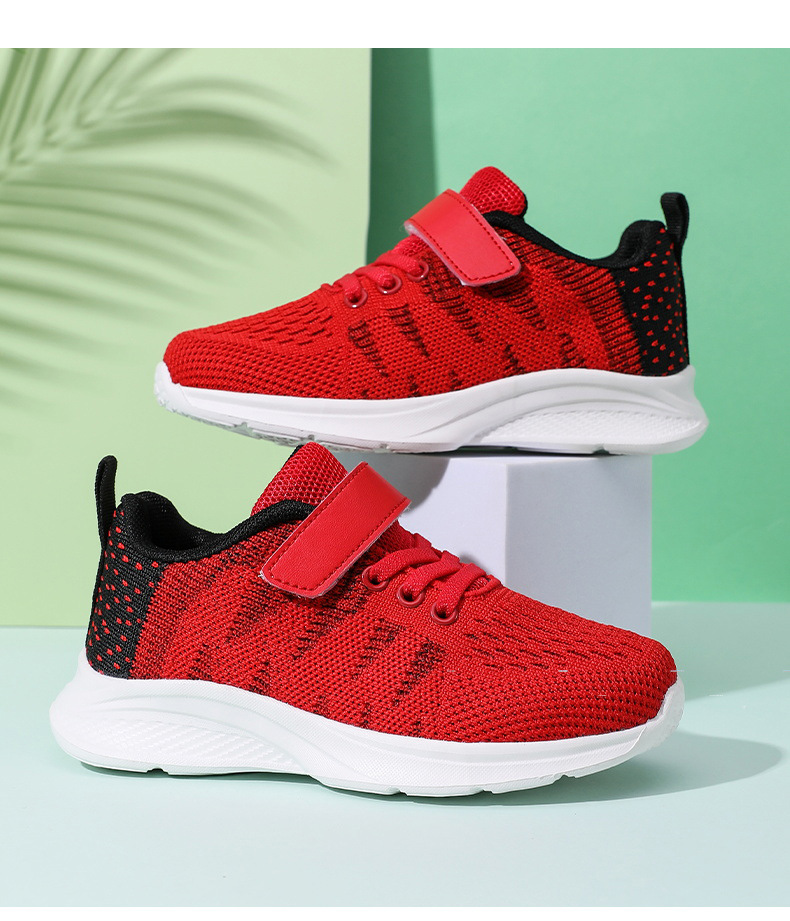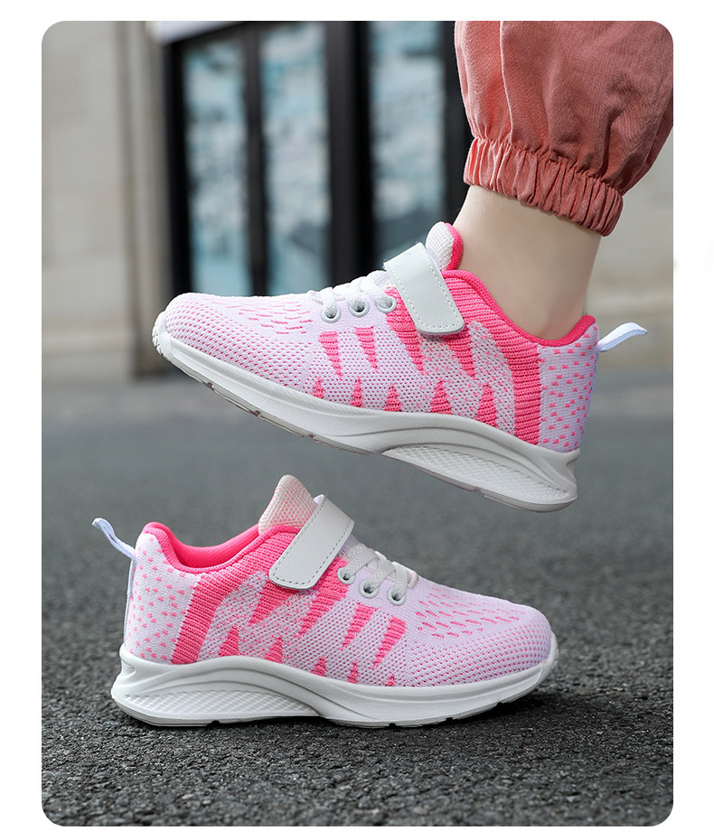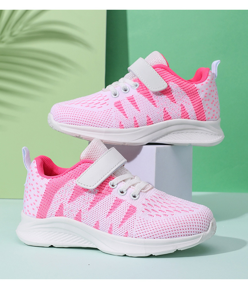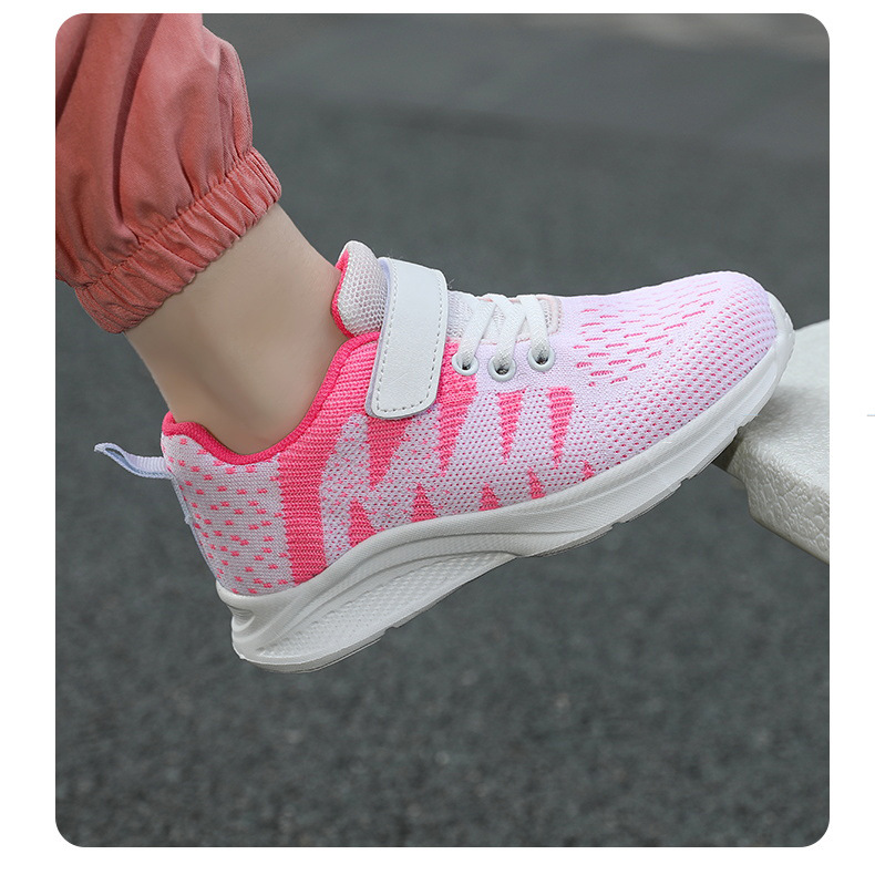 국경 간 비행 직조 운동화 봄과 가을 메쉬 어린이 운동화 경량 어린이 및 소녀 캐주얼 러닝 슈즈