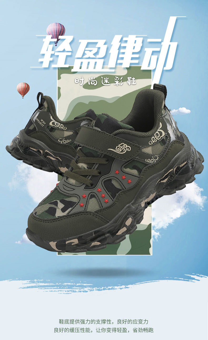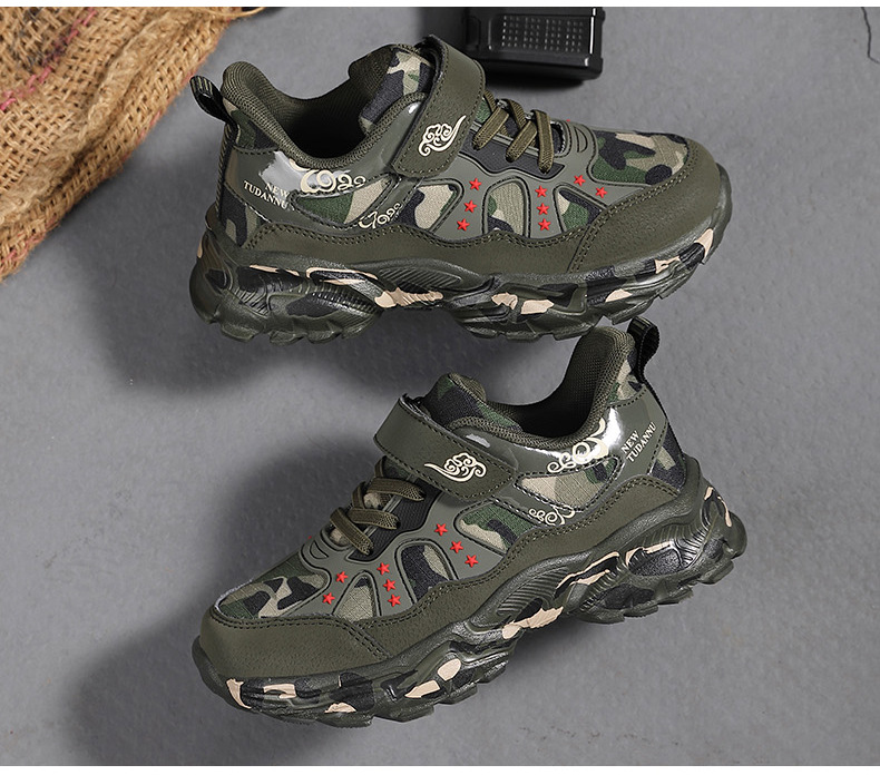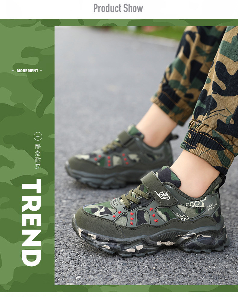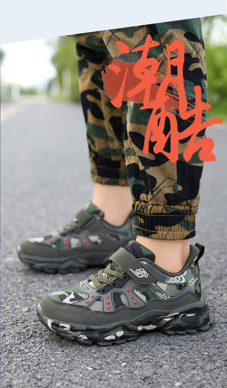 가을과 겨울 새로운 캐주얼 위장 캔버스 어린이 신발 재고 중대형 어린이 훈련을위한 경량 소프트 솔로 스포츠 신발