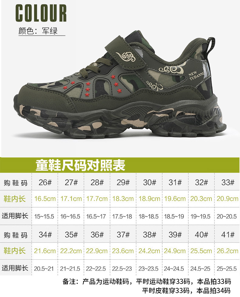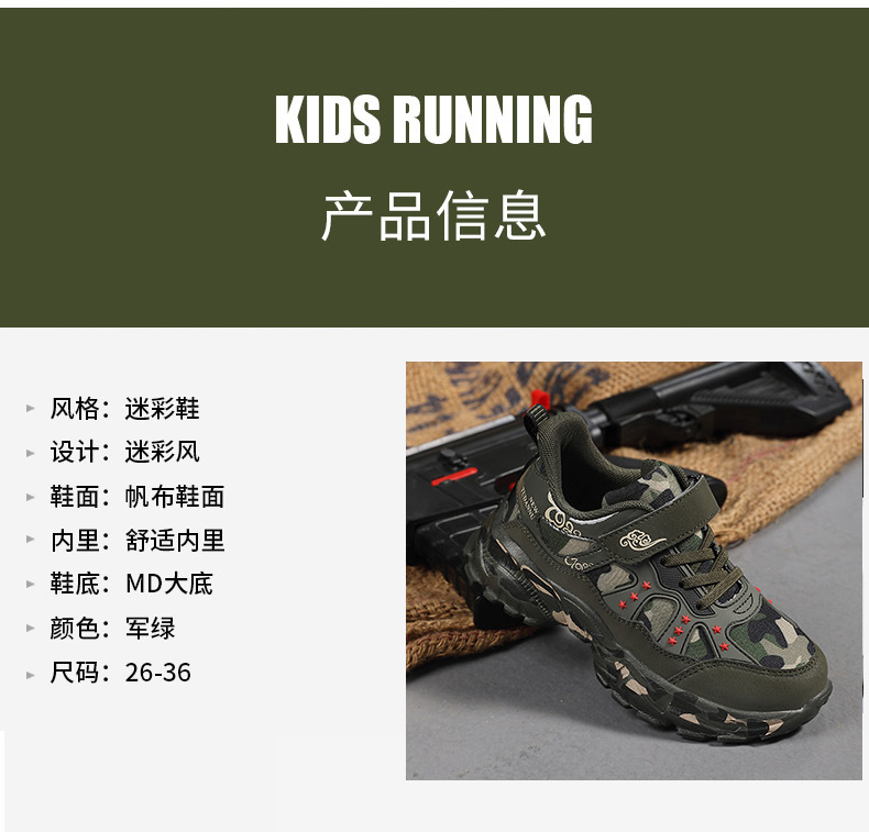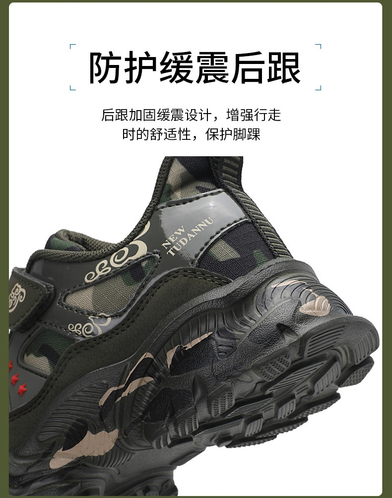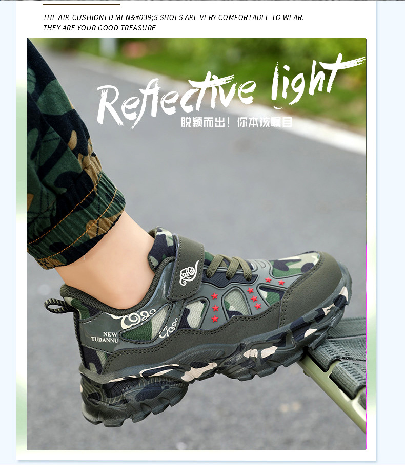 가을과 겨울 새로운 캐주얼 위장 캔버스 어린이 신발 재고 중대형 어린이 훈련을위한 경량 소프트 솔로 스포츠 신발