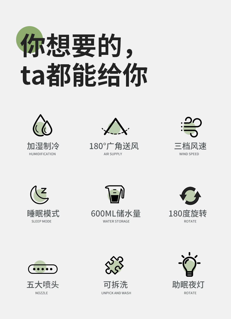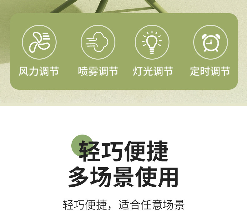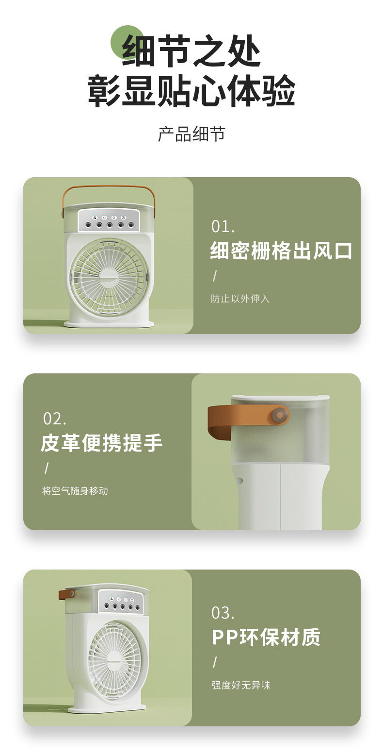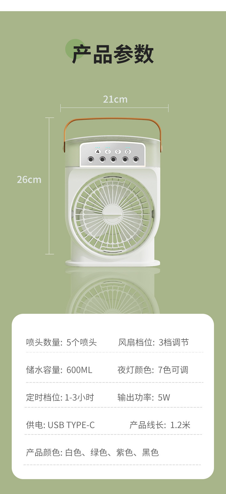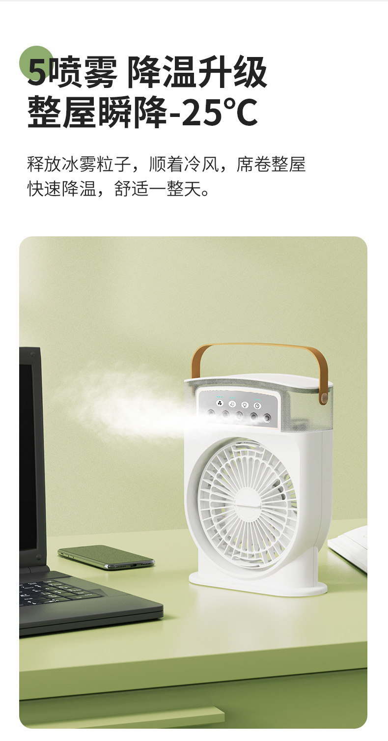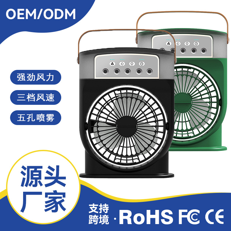 국경 간 새로운 소형 허리형 5 홀 스프레이 팬 가습 냉동 스프레이 팬 작은 에어컨 미니 야간 조명 전기 팬