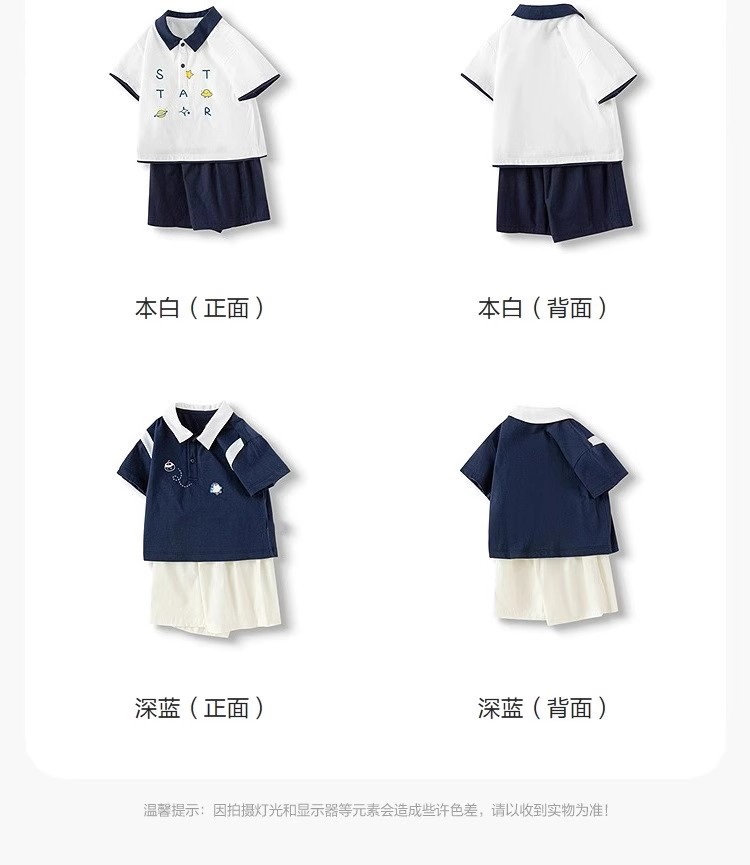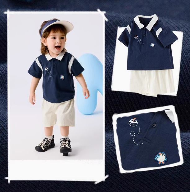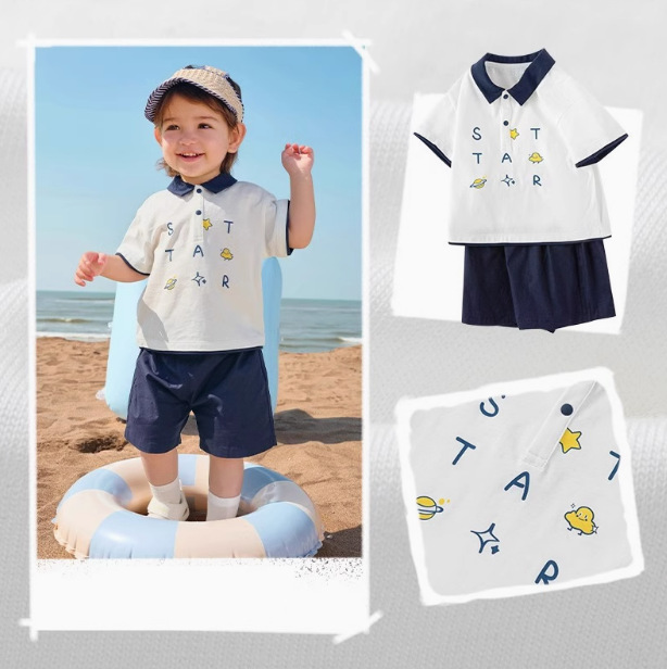 어린이 아기의 반팔 세트 여름 소년 폴로 셔츠 투피스 세트 2025 새로운 패션 트렌디스토어 가기