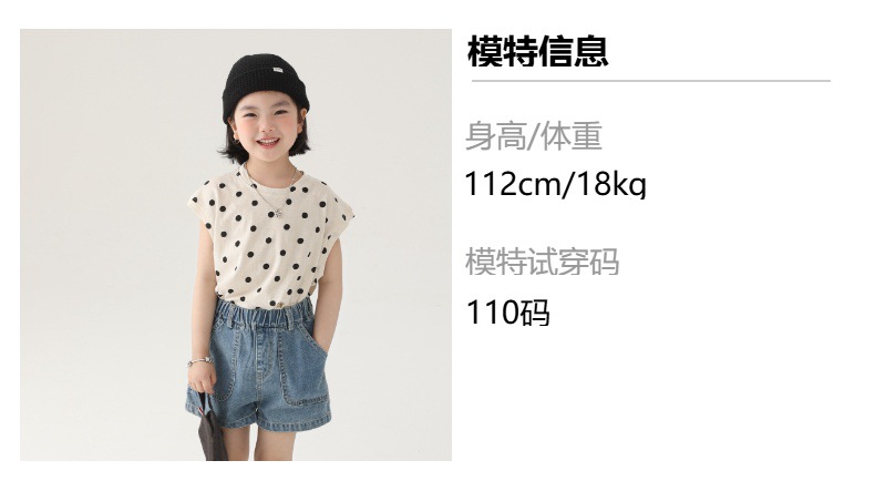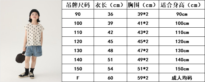 BOBOKIDS 25 여름 소녀 웨이브 포인트 대마 코튼 티셔츠 탑 일본 아동복 어린이 민소매 티셔츠 부모-어린이스토어 가기