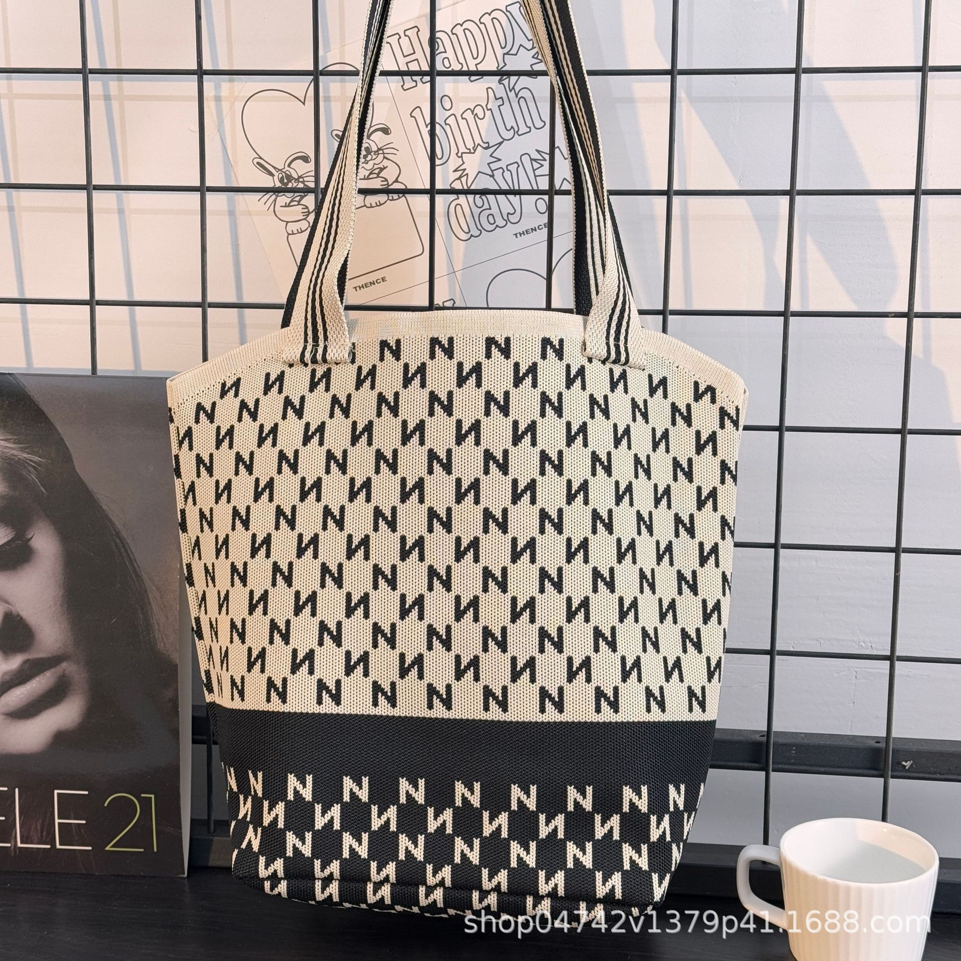 여성용 숄더백 2024 새로운 한국어 버전 세련된 격자 무늬 토트 백 통근 다용도 대용량 노트북 핸드백