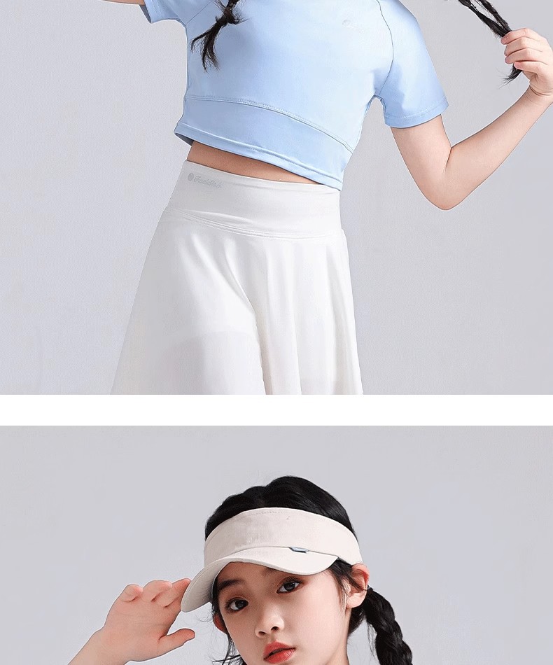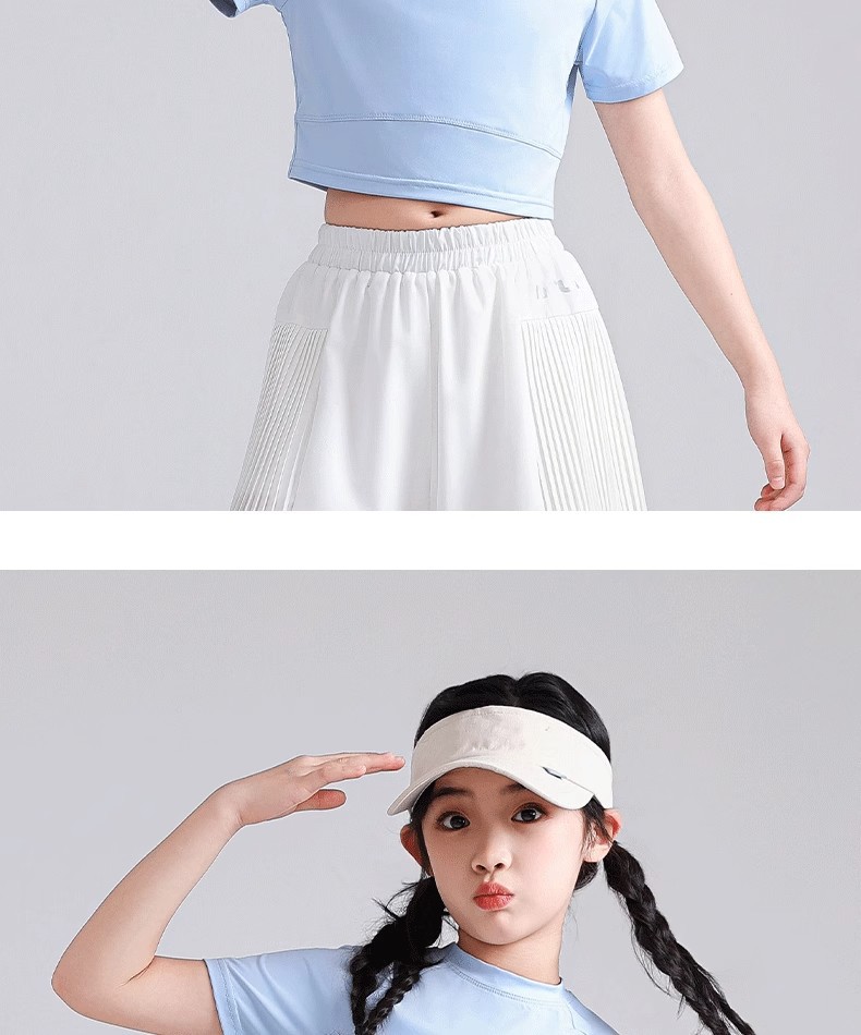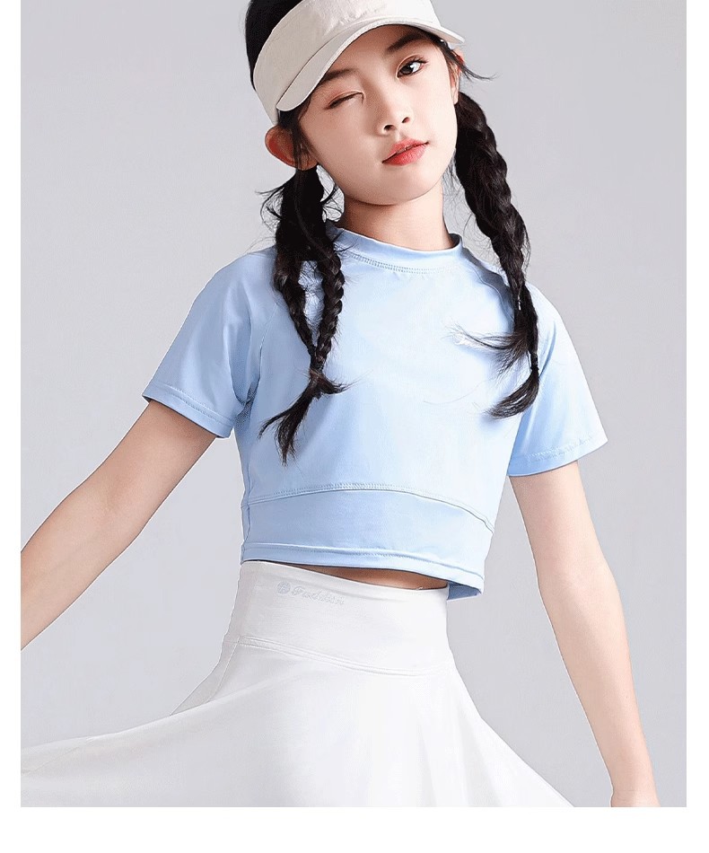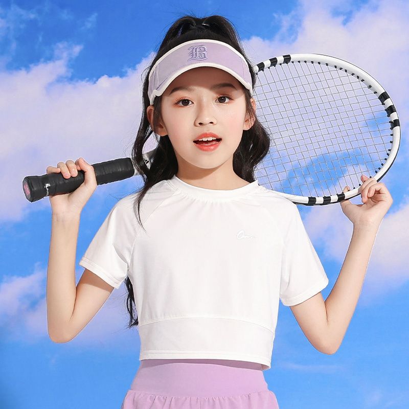 소녀 아이스 실크 반팔 2025 여름 새로운 선 스크린 티셔츠 중대형 어린이를위한 빠른 건조 탑 배꼽 짧은 스포츠 티셔츠스토어 가기