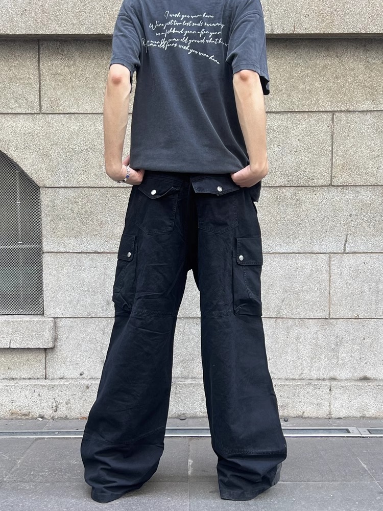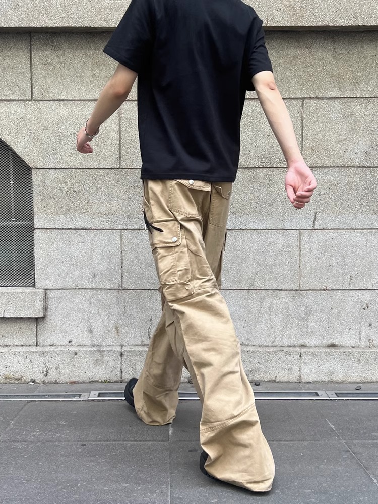 아메리칸 레트로 클린핏 대형 포켓 캐주얼 오버올 남성 하이 스트리트 가을 루즈 스트레이트 다용도 롱 팬츠스토어 가기