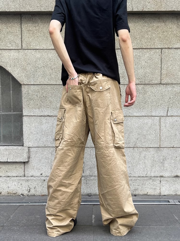 아메리칸 레트로 클린핏 대형 포켓 캐주얼 오버올 남성 하이 스트리트 가을 루즈 스트레이트 다용도 롱 팬츠