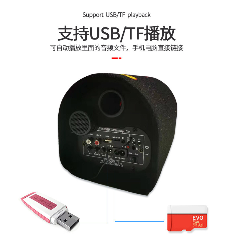功能:蓝牙,收音机,USB,TF卡,音频输入