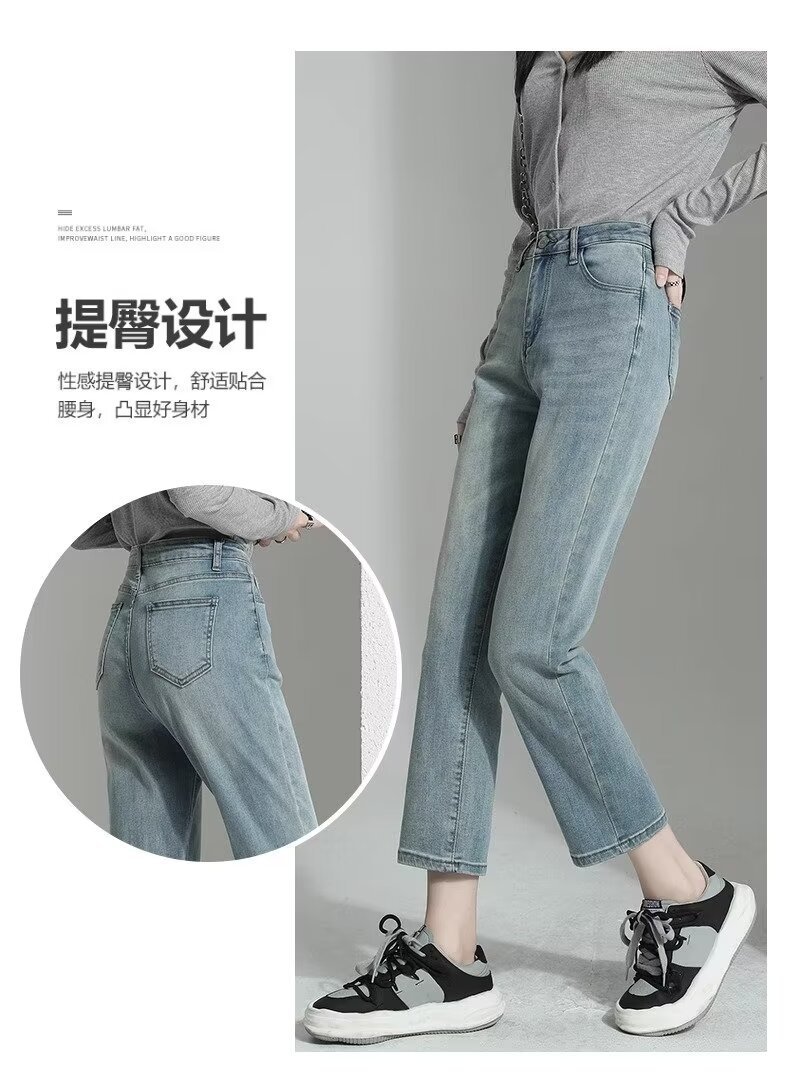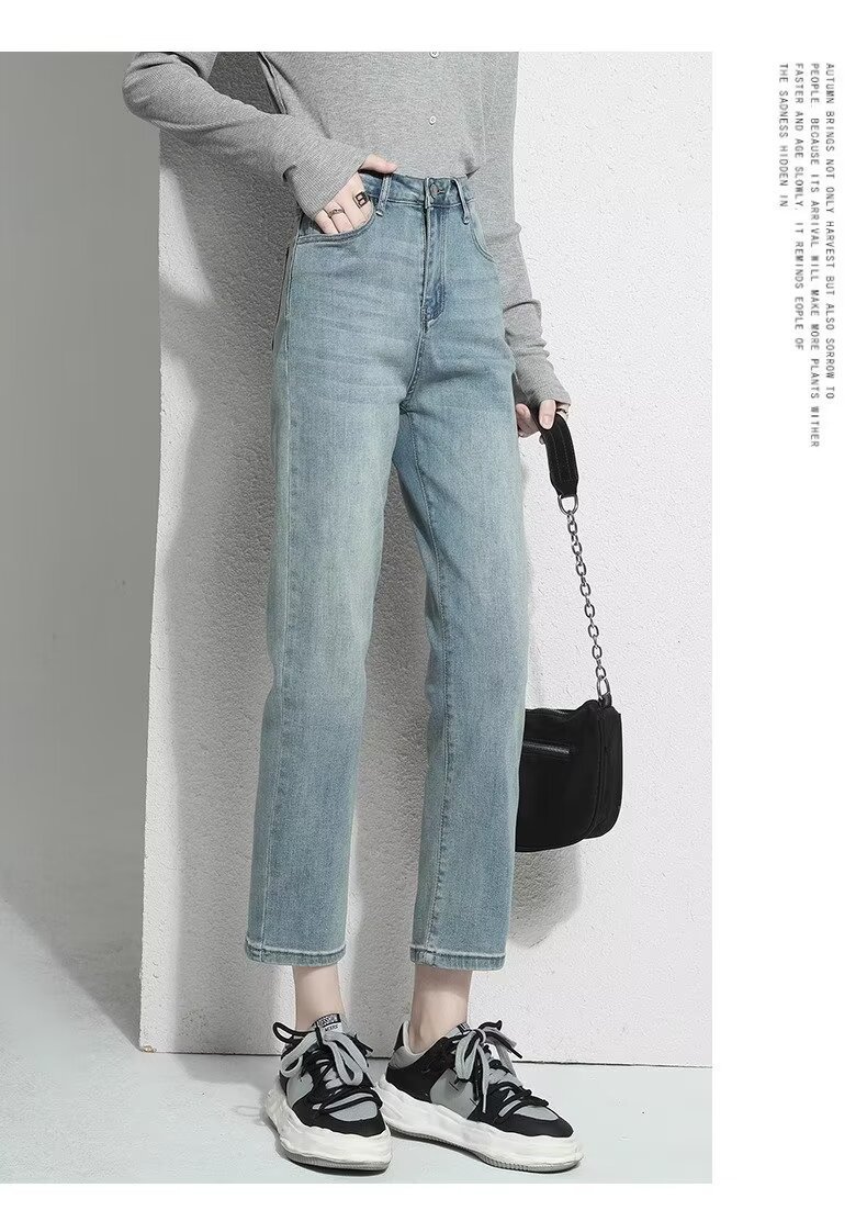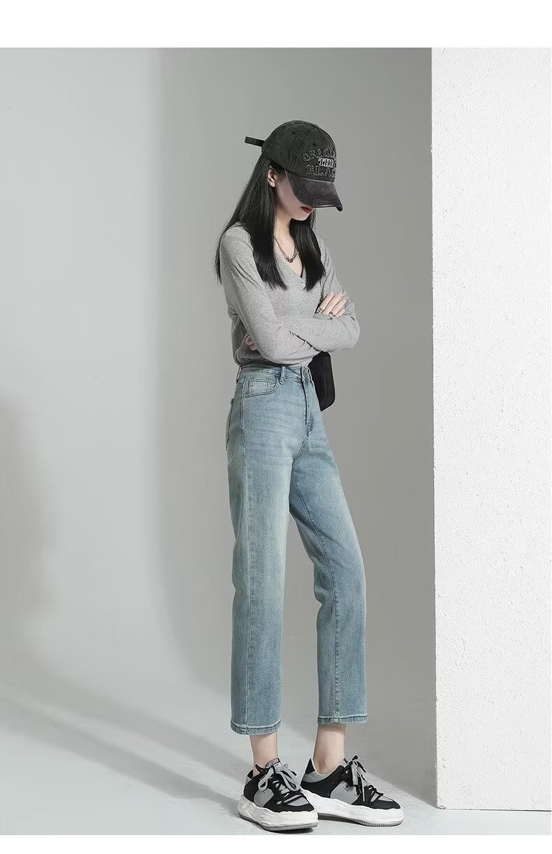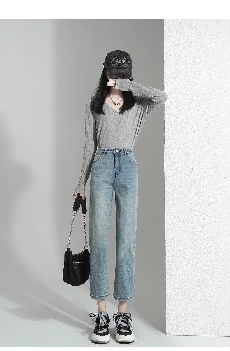 여성용 스트레이트 청바지 2025 봄 여름 신작 인기 하이웨이스트 루즈 슬리밍 스트레이트 9부 좁은 버전 담배 파이프 팬츠스토어 가기