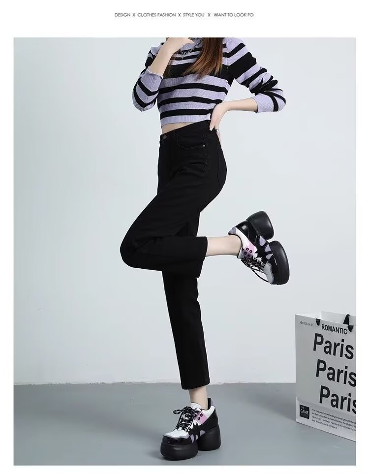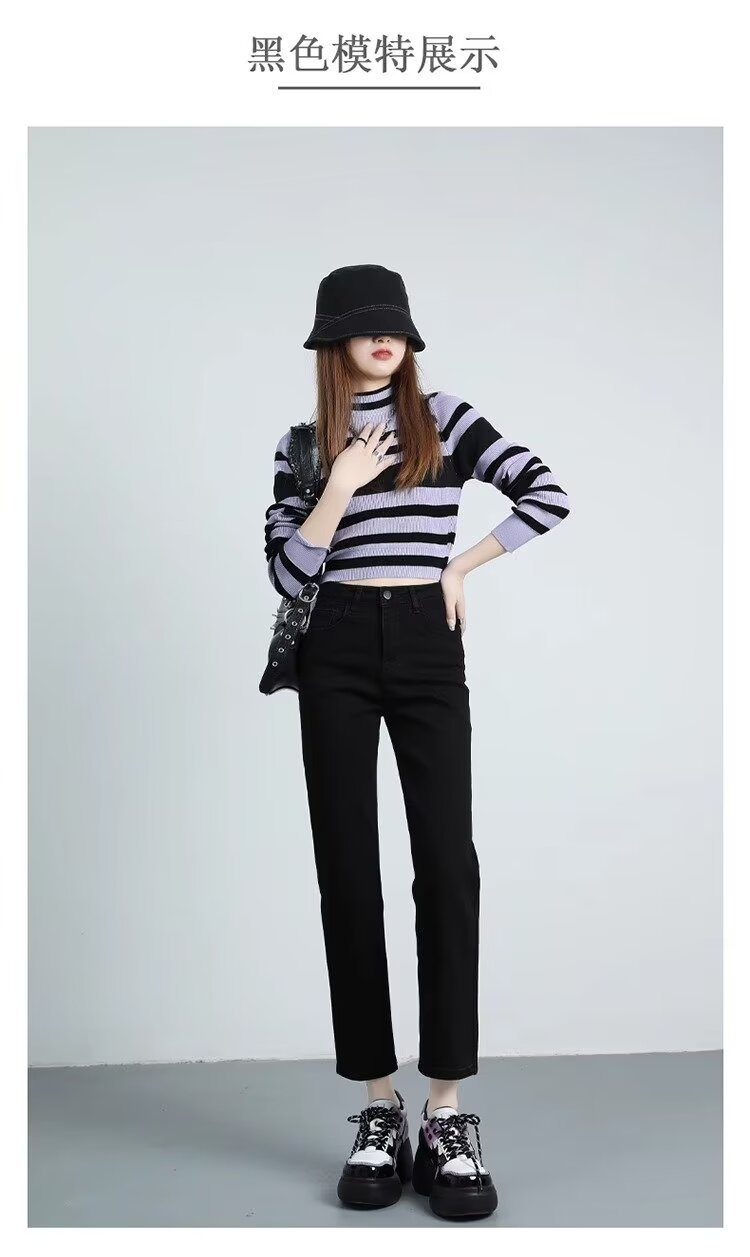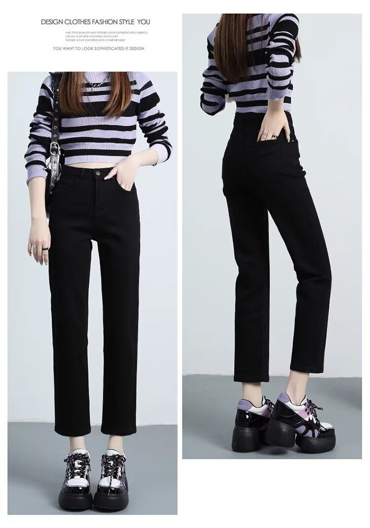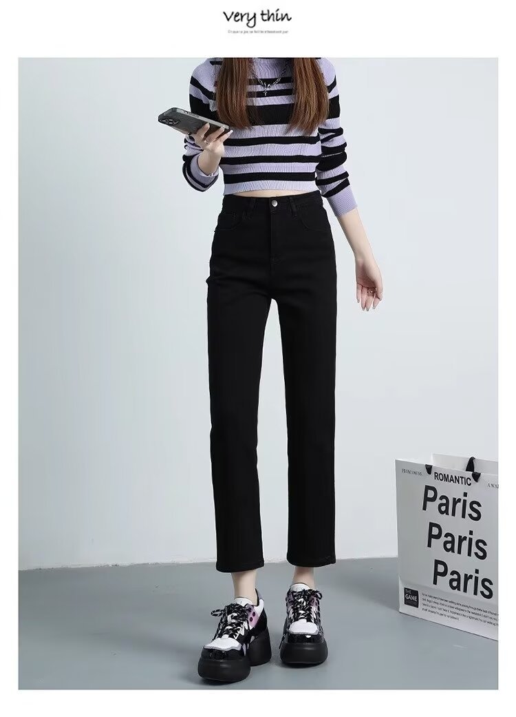 여성용 스트레이트 청바지 2025 봄 여름 신작 인기 하이웨이스트 루즈 슬리밍 스트레이트 9부 좁은 버전 담배 파이프 팬츠스토어 가기
