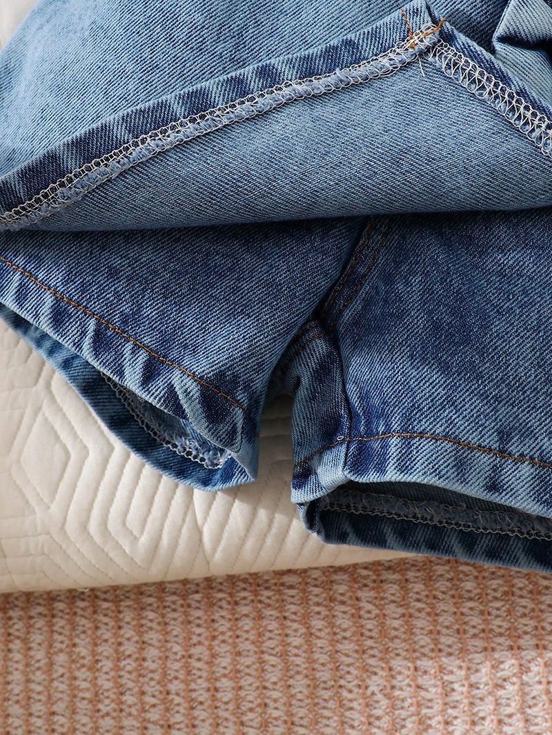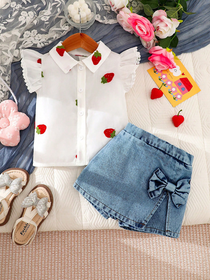 25 새로운 여름 소녀 소녀 소녀 아기 소녀 데님 반바지 아기 친화적 인 캐주얼 세트 어린이 세트 국경 간 클래스 A 짧은 소매스토어 가기