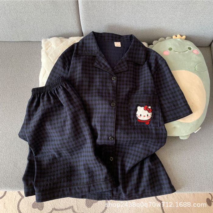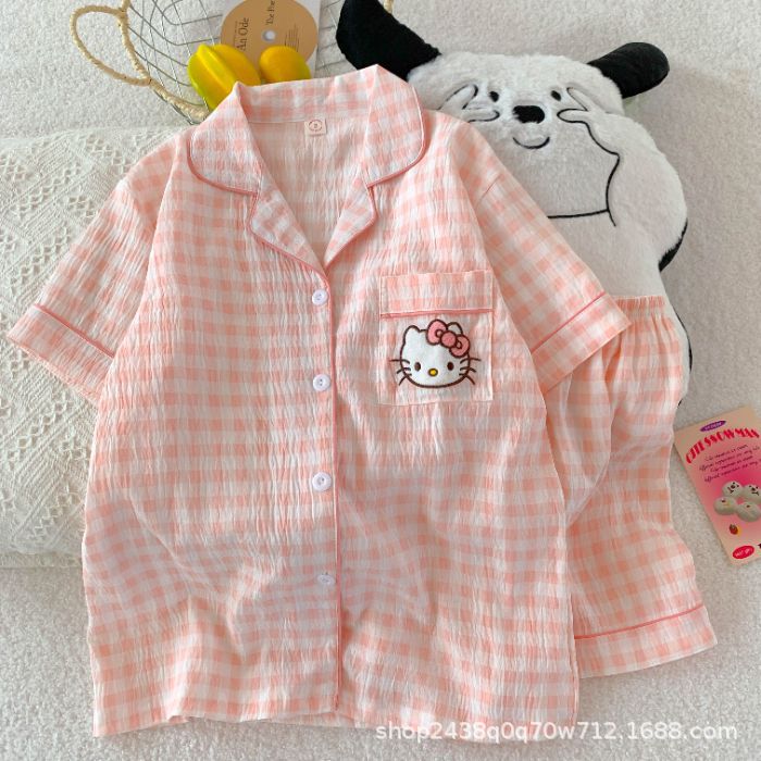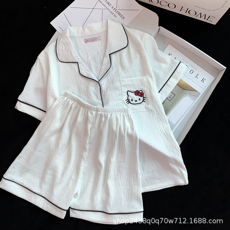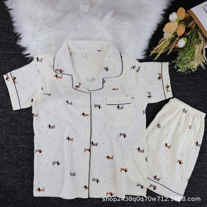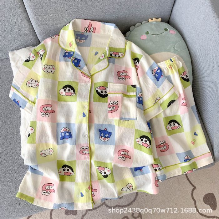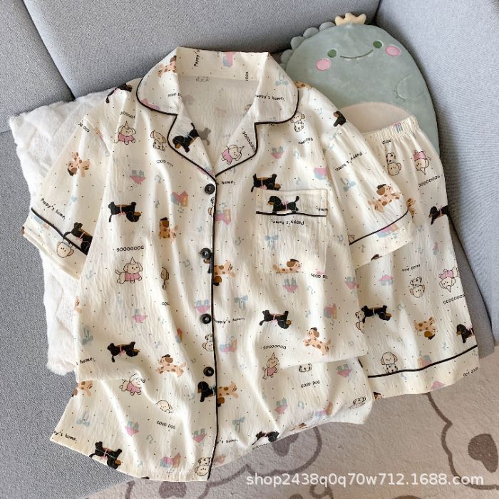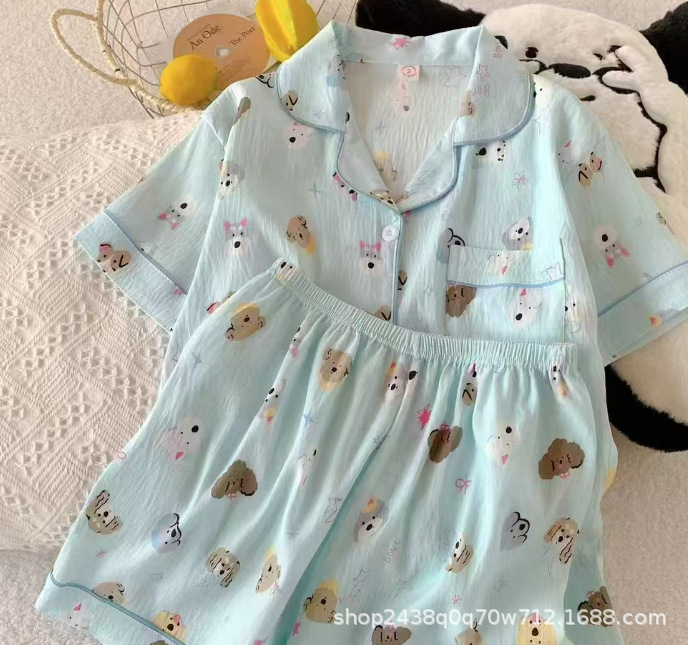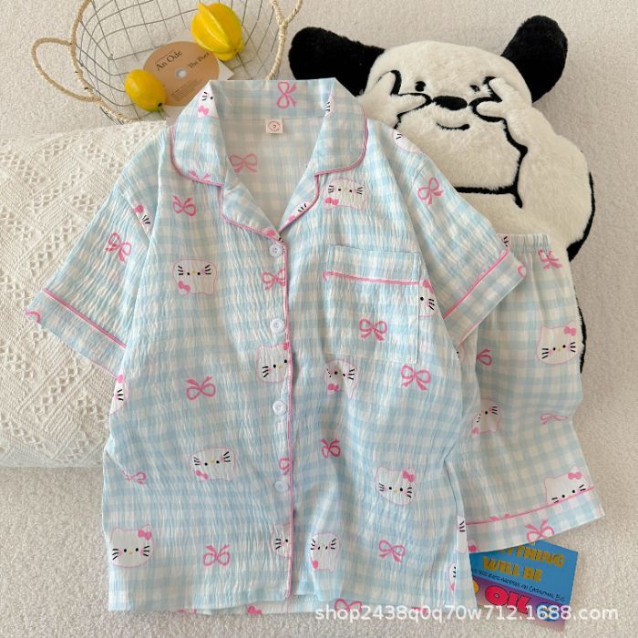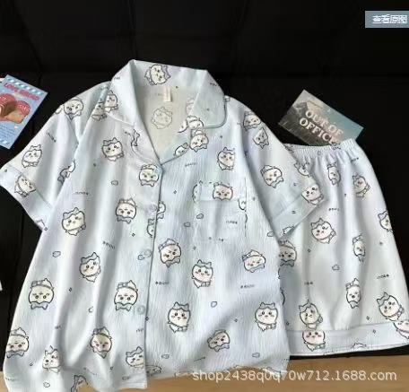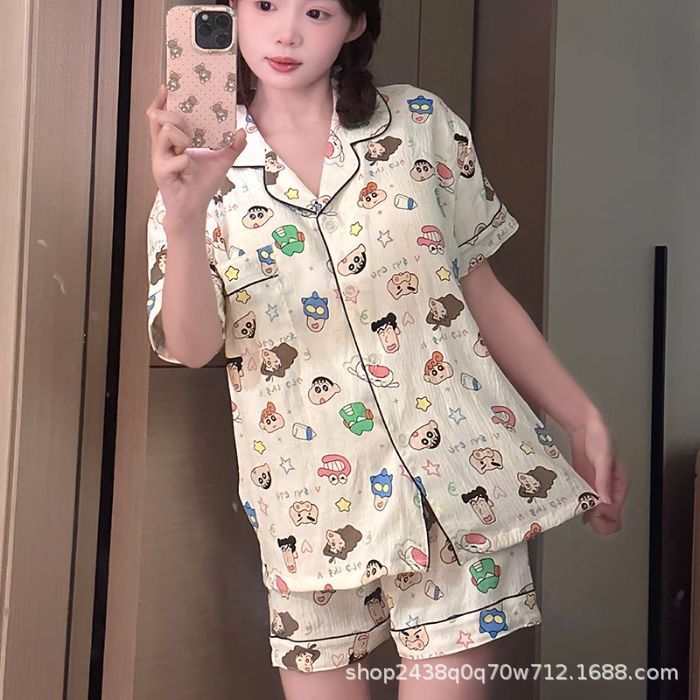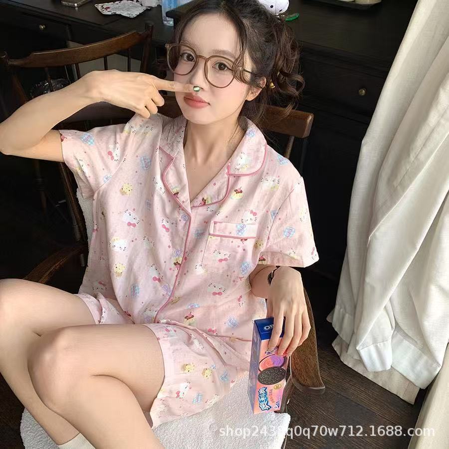 2025 새로운 구름면 귀여운 자기 비하 곰 반팔 줄무늬 잠옷 여성의 봄과 여름 캐주얼 아웃웨어 홈 의류스토어 가기