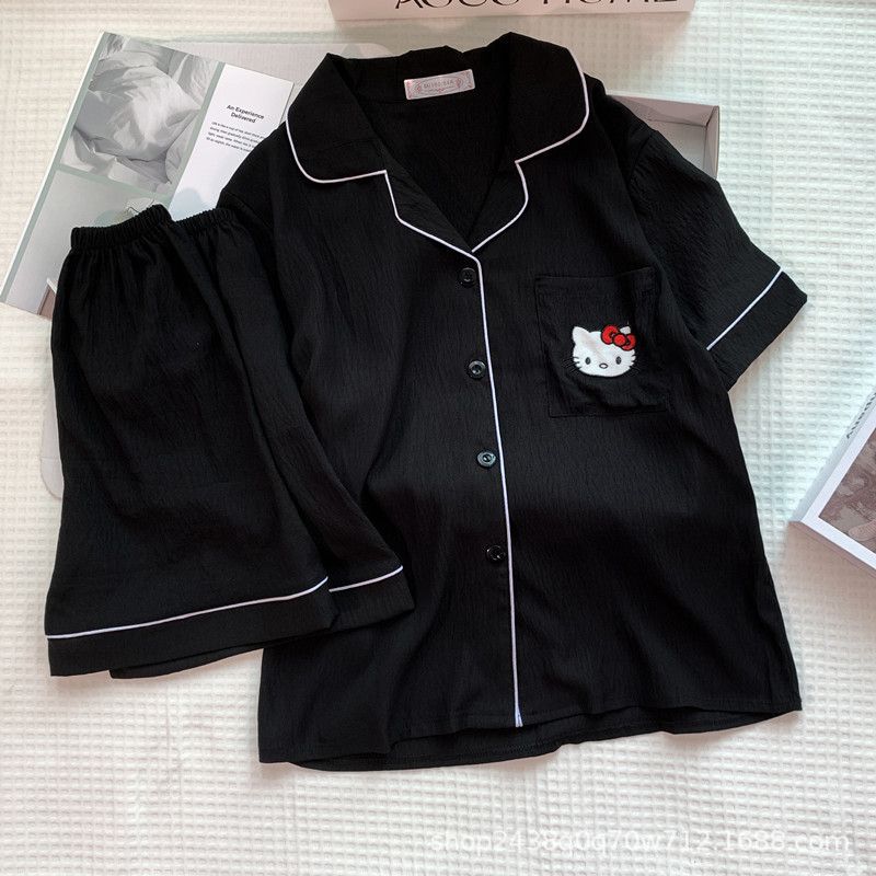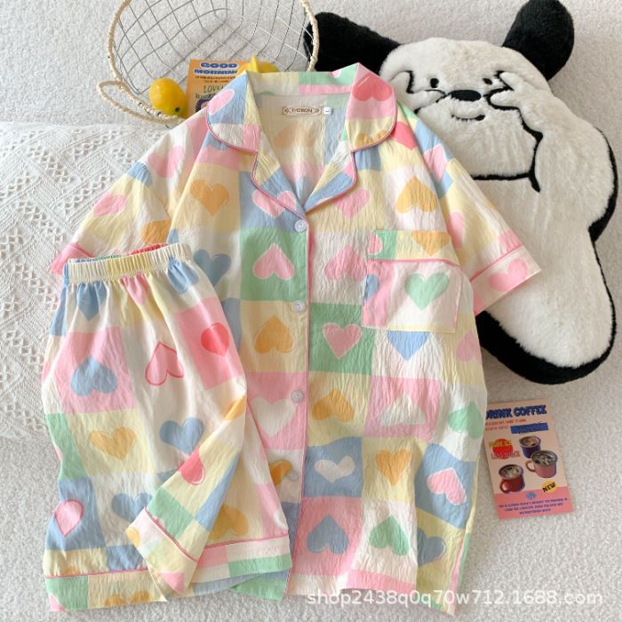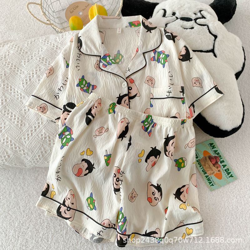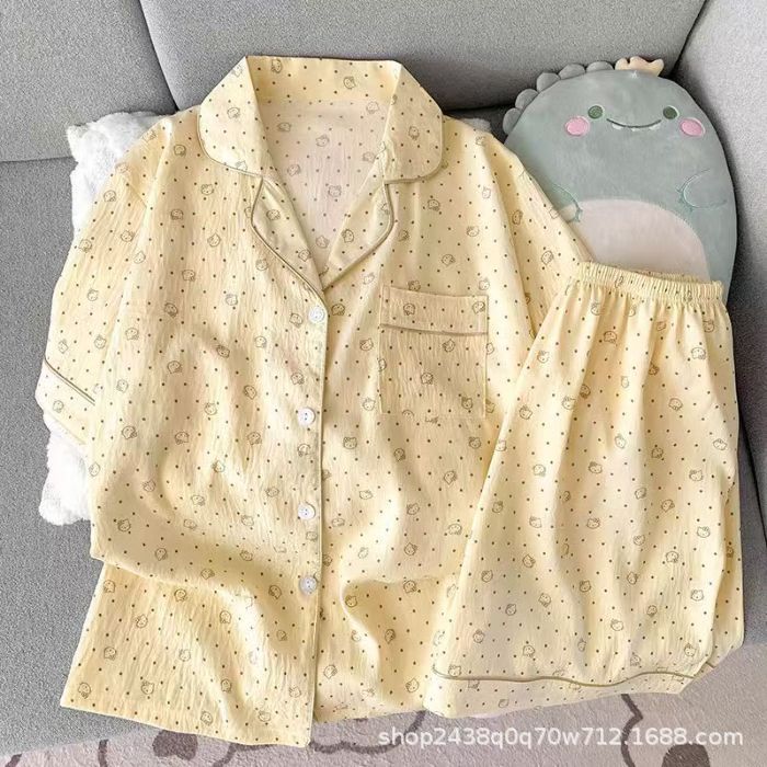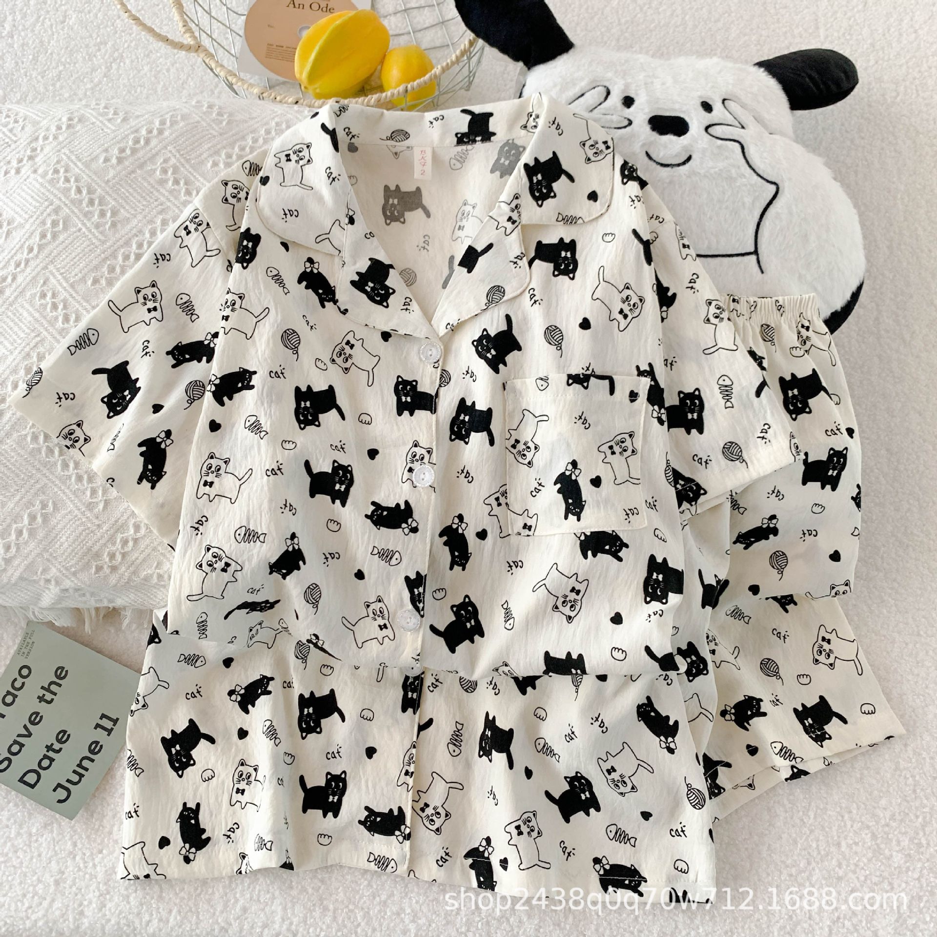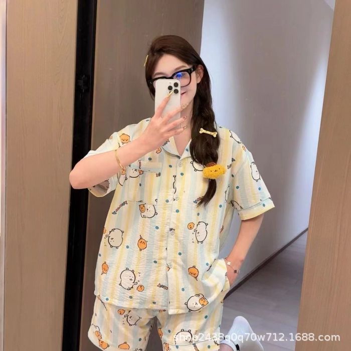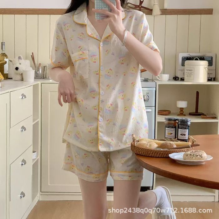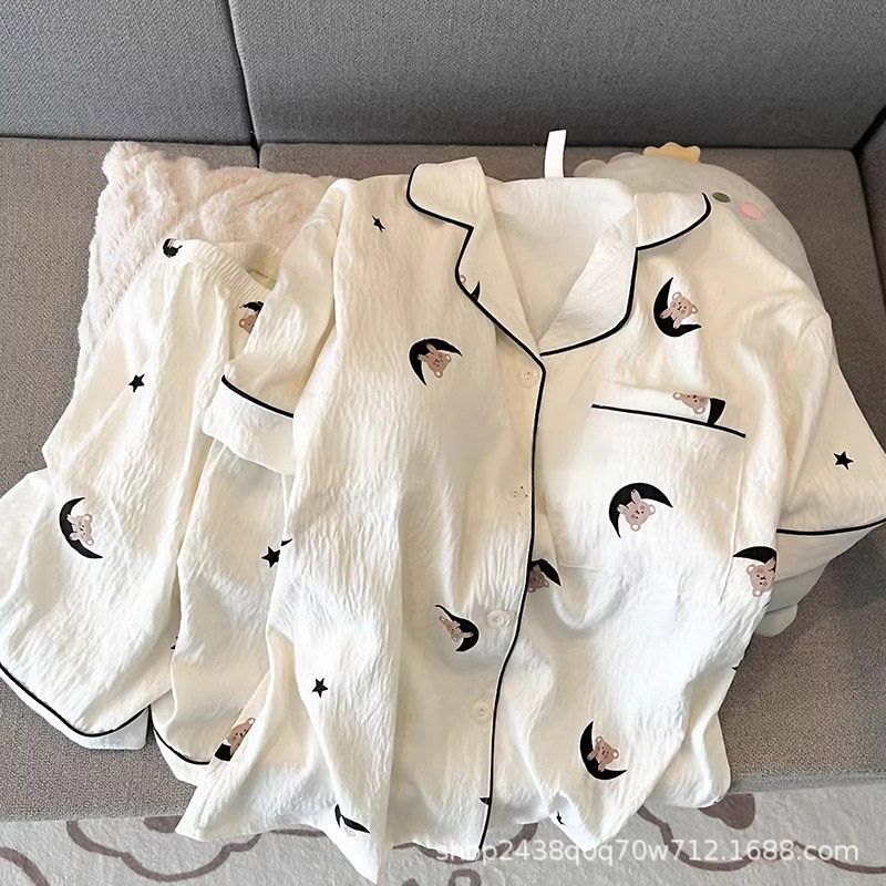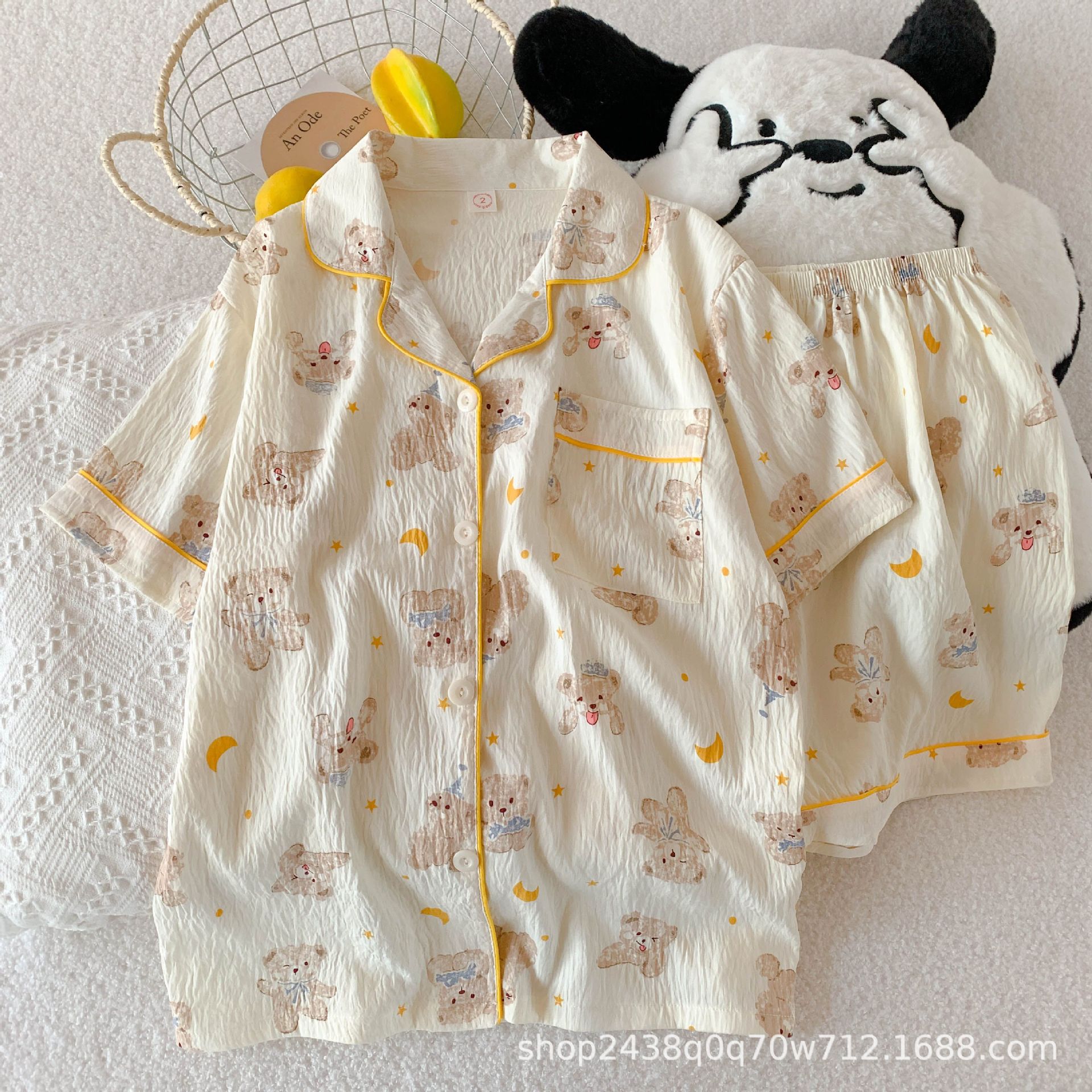 2025 새로운 구름면 귀여운 자기 비하 곰 반팔 줄무늬 잠옷 여성의 봄과 여름 캐주얼 아웃웨어 홈 의류