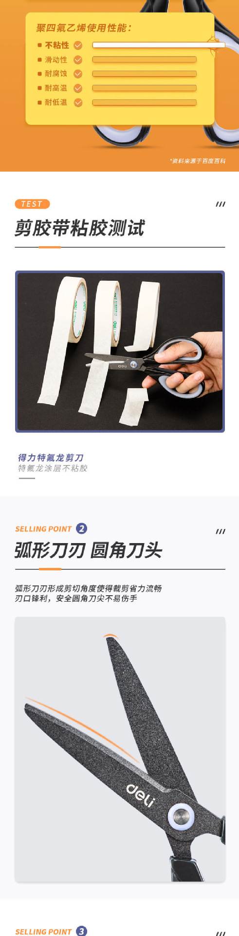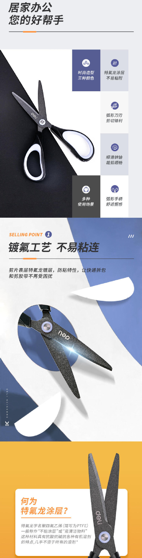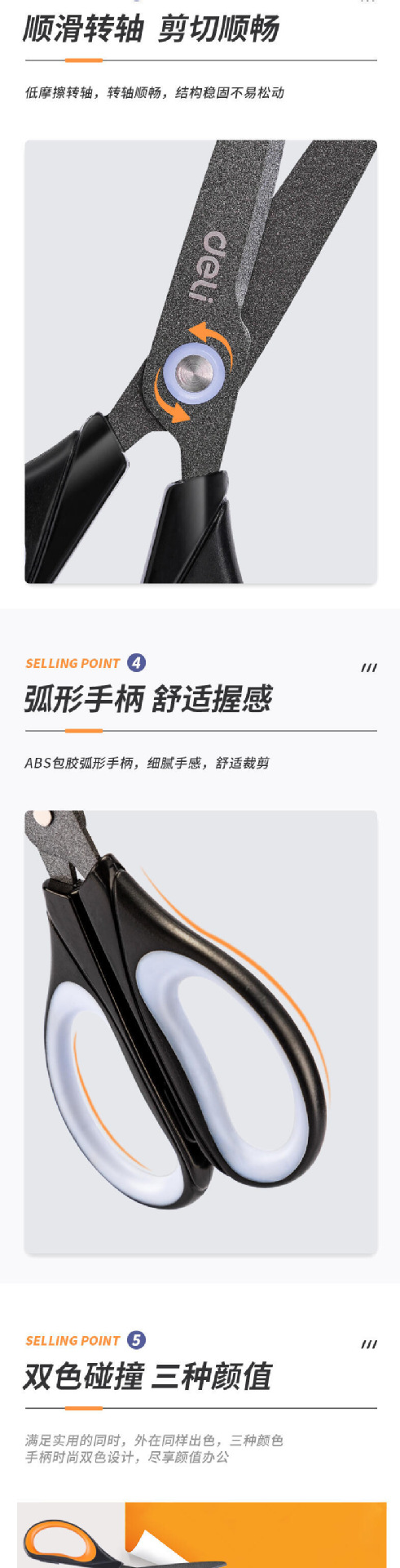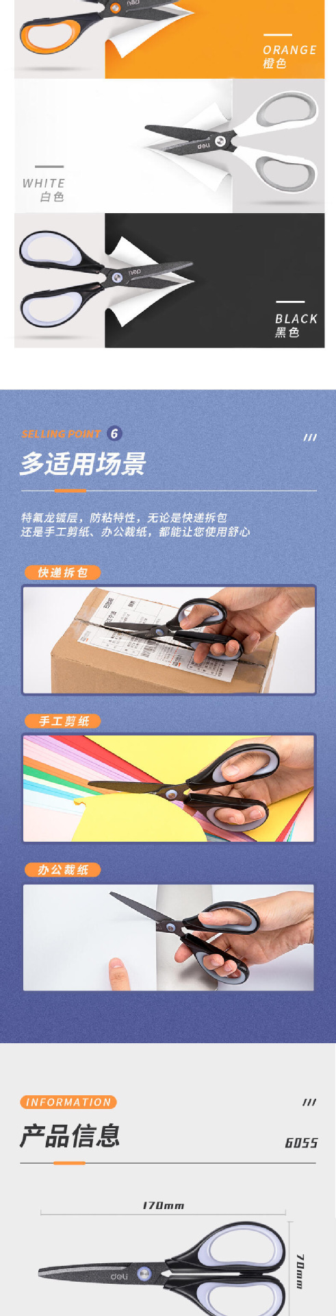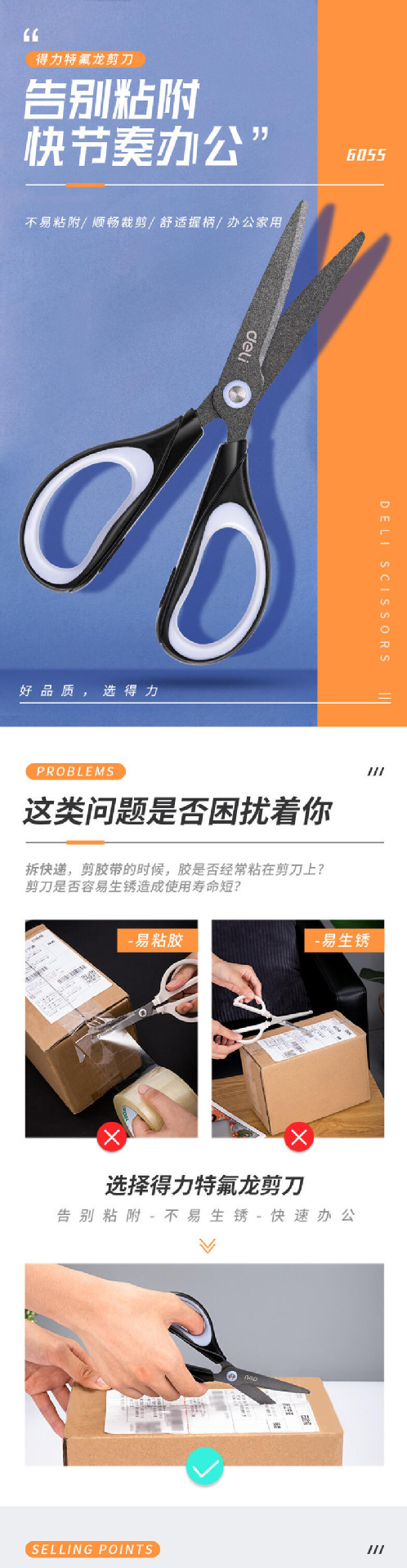델리 테프론 가위 6055 부드러운 고무 손잡이 스테인레스 스틸 라운드 헤드 가위 손 바느질 사무실 가위 도매