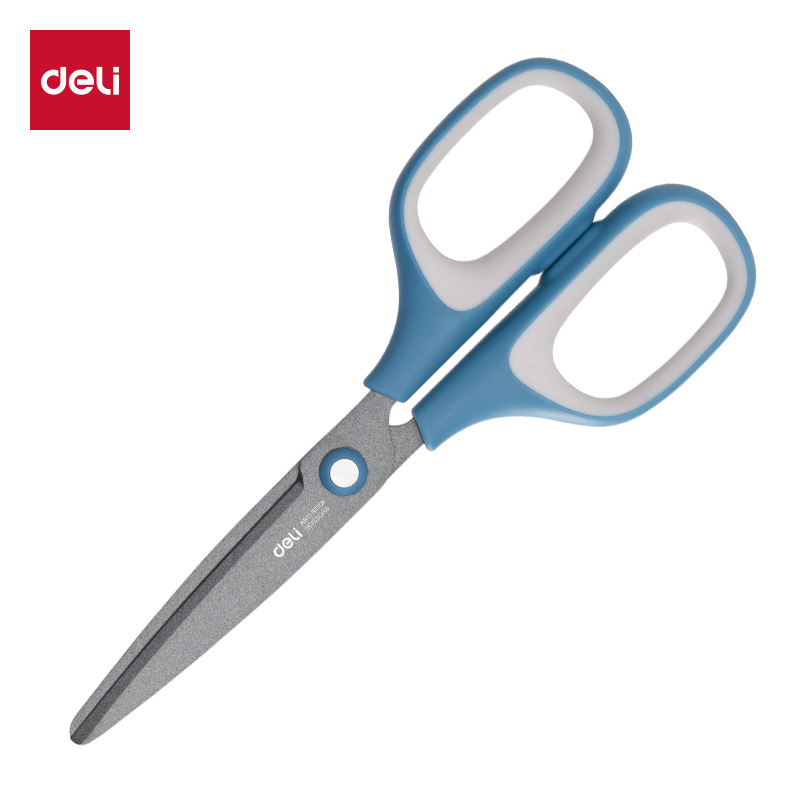 델리 테프론 가위 6055 부드러운 고무 손잡이 스테인레스 스틸 라운드 헤드 가위 손 바느질 사무실 가위 도매스토어 가기
