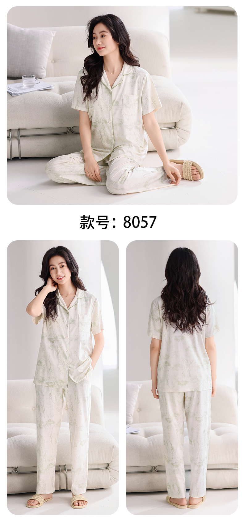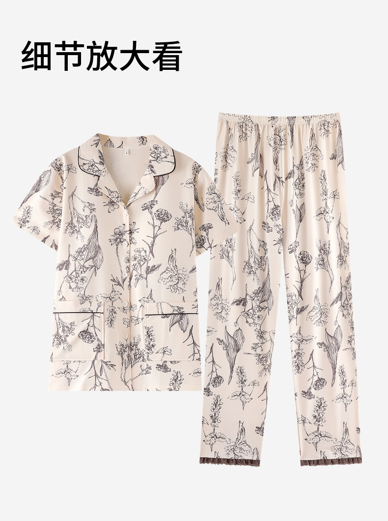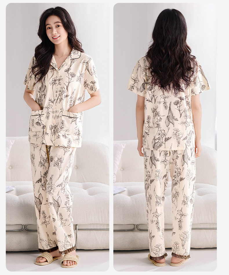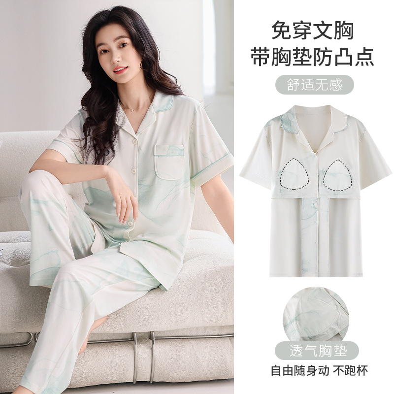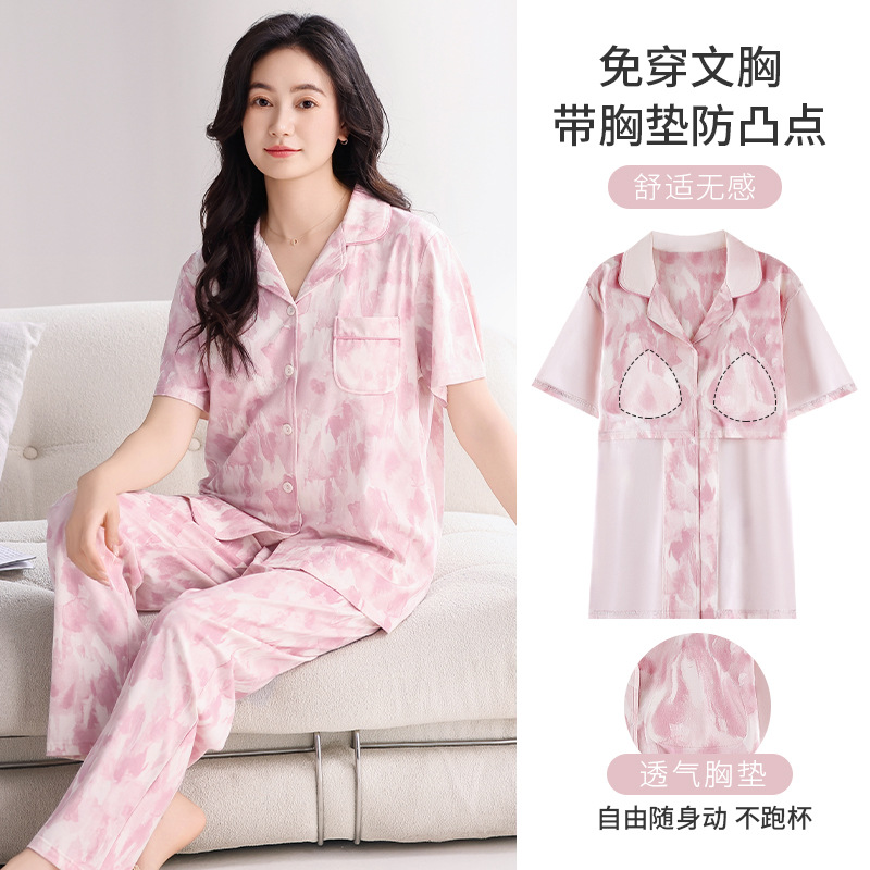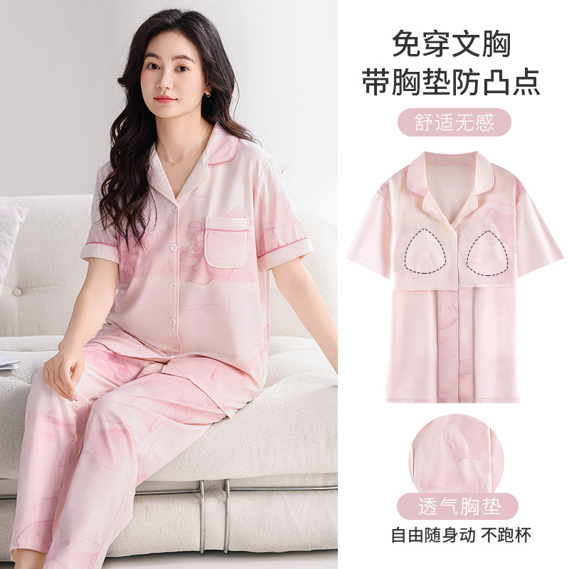 가슴 패드 여성 여름 순면 반팔 바지 여름 여성 중년 어머니 얇은 반소매 홈 옷을 입은 잠옷스토어 가기