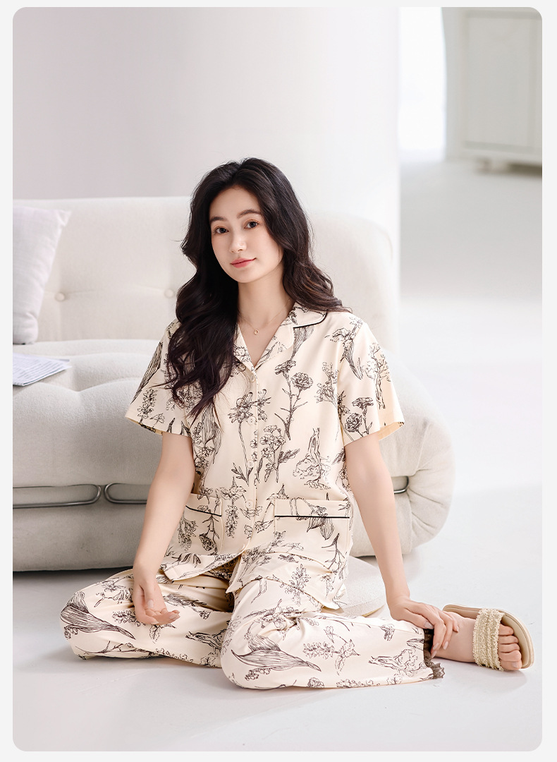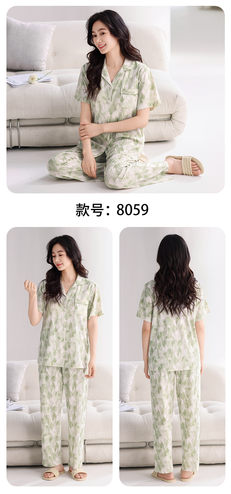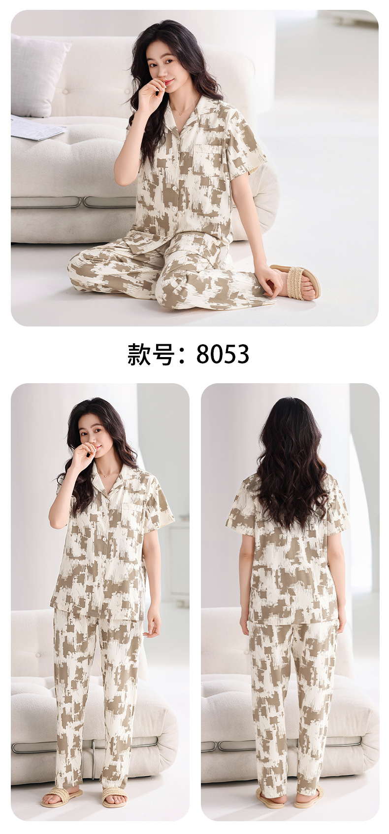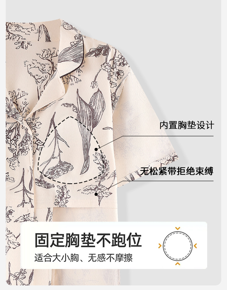 가슴 패드 여성 여름 순면 반팔 바지 여름 여성 중년 어머니 얇은 반소매 홈 옷을 입은 잠옷스토어 가기