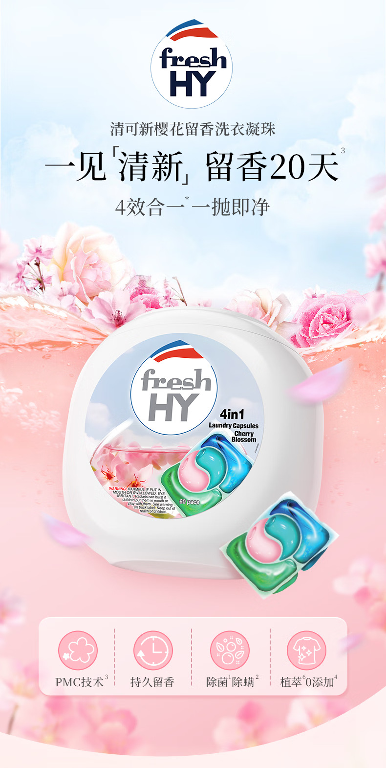 Qingkexin 세탁 비즈 벚꽃 향기 60캡슐 살균 클렌징 딥 클렌징 향기 고급 세탁 비즈 패밀리 팩스토어 가기