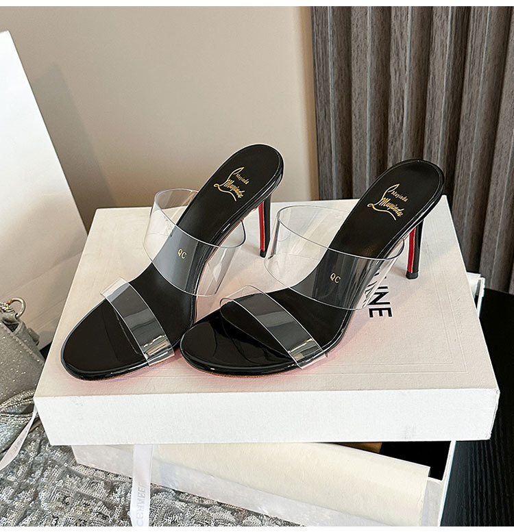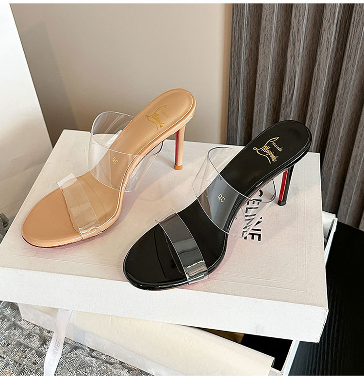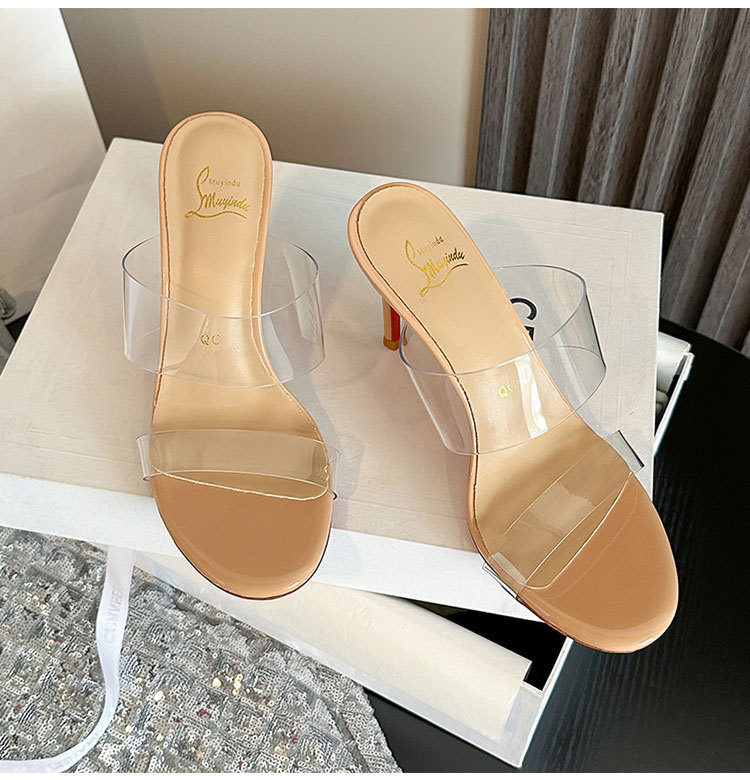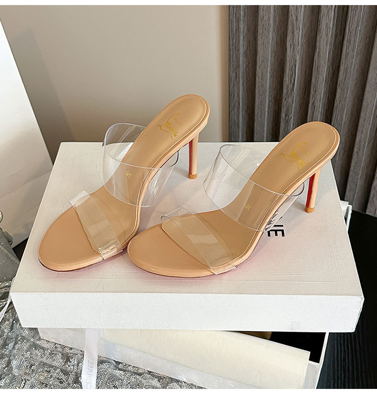 25L11 신상품 2025년 투명 하이힐 여성용 얇은 굽 우아한 스트랩 외출용 하이힐 샌들스토어 가기