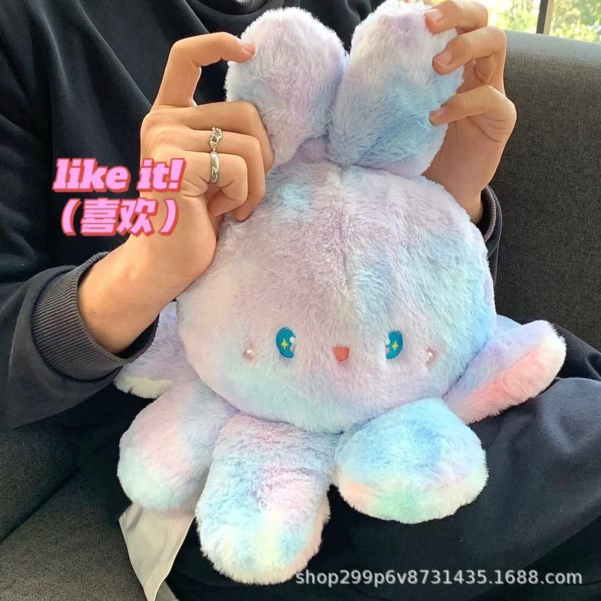 귀여운 다채로운 문어 토끼 인형 색상 변경 문어 봉제 장난감 양면 인형 생일 선물 소녀 인형스토어 가기