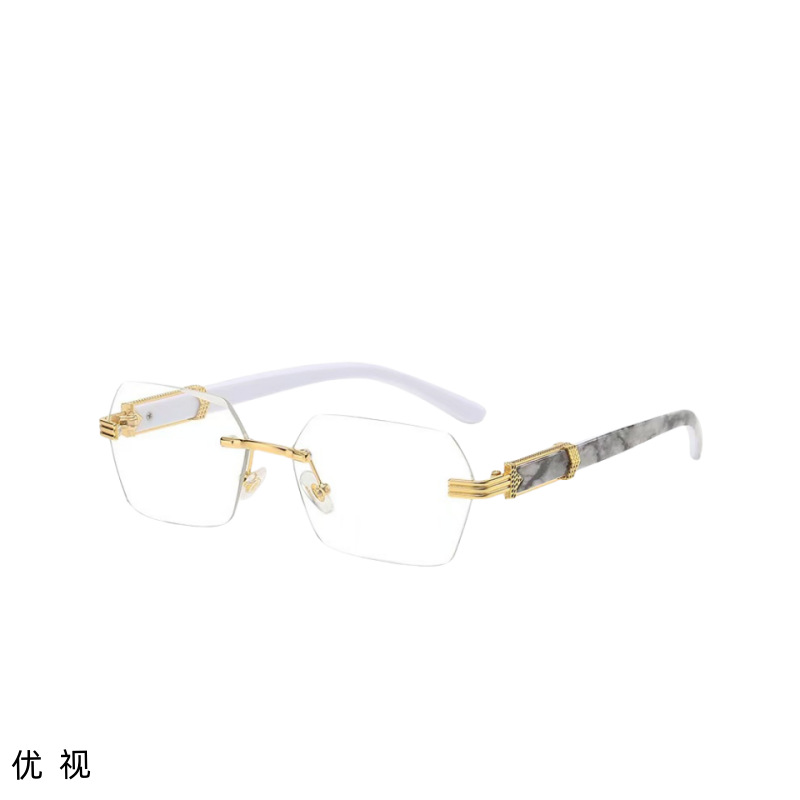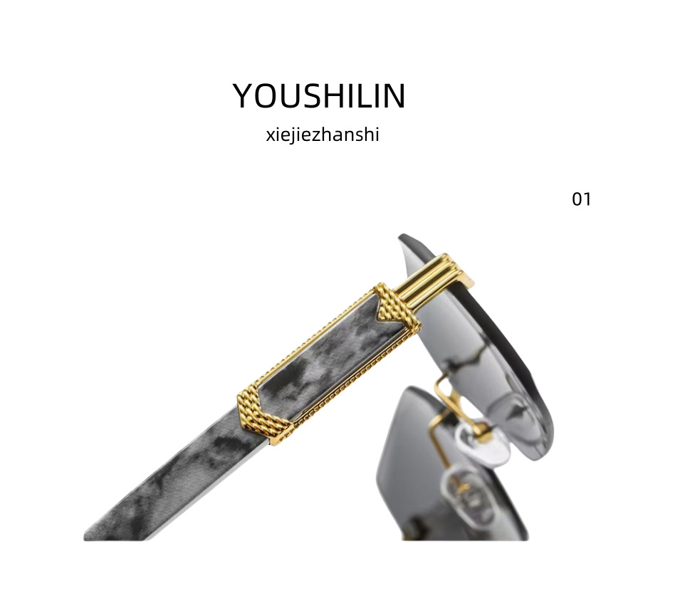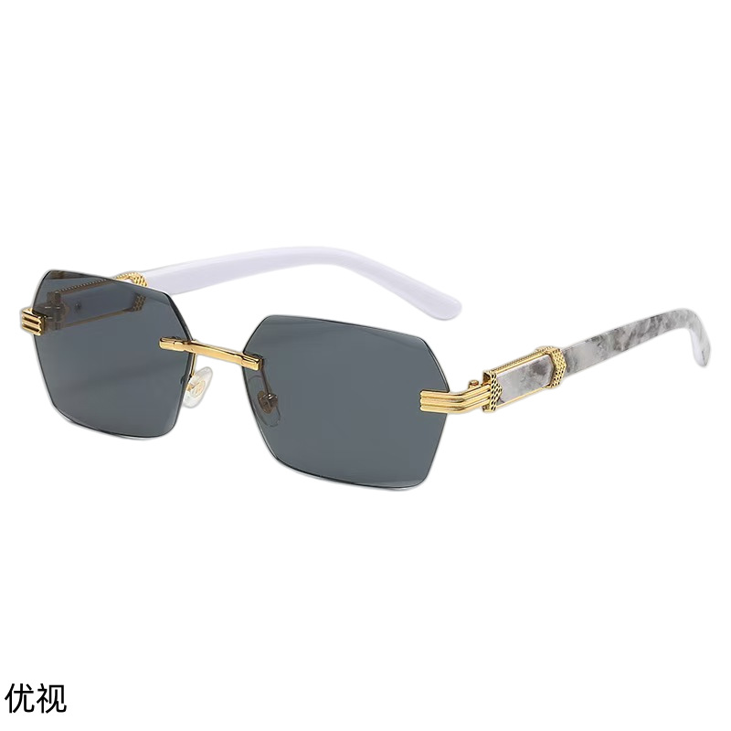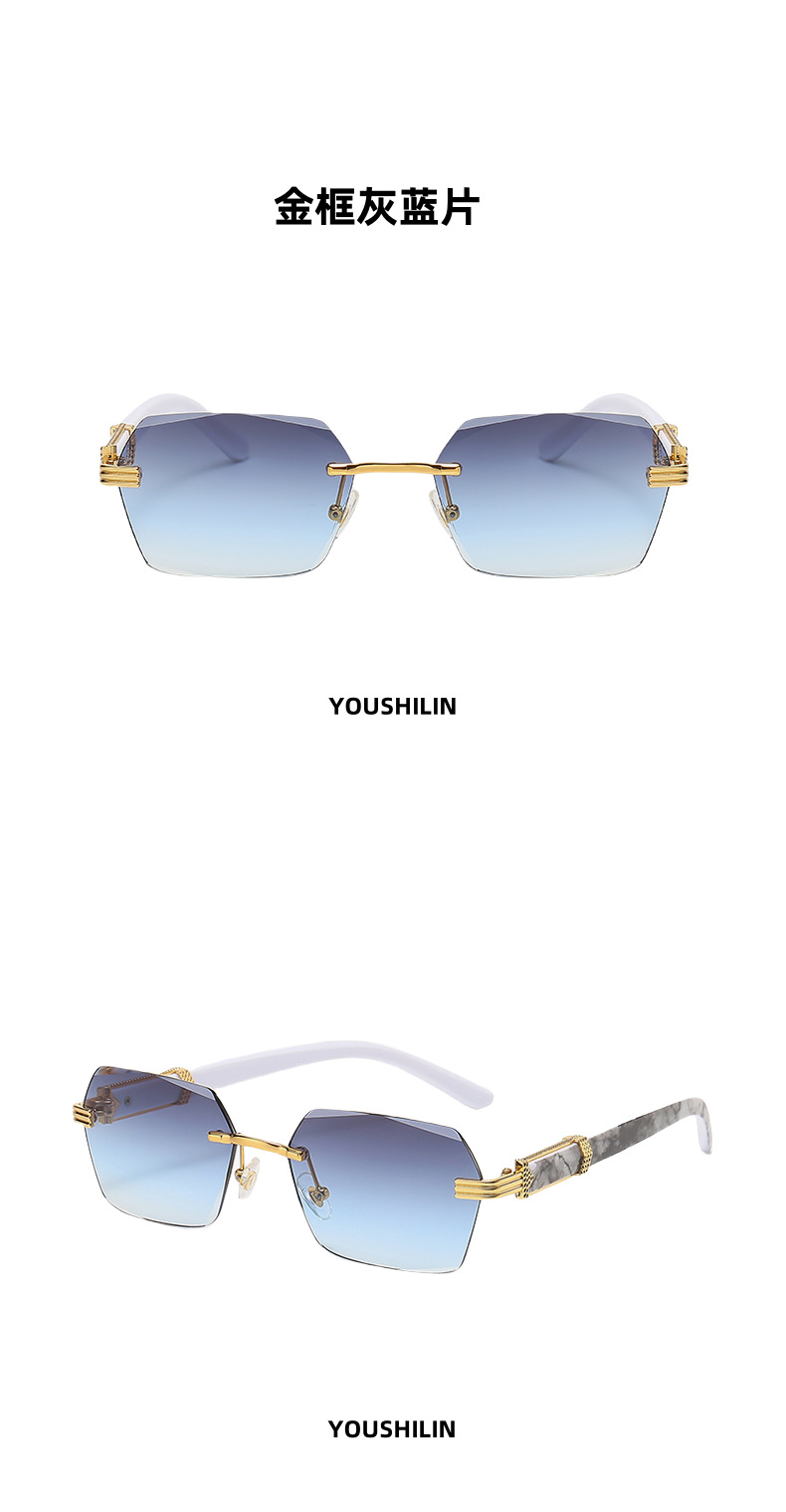 새로운 유시 유럽 및 미국 스타일 무테 절단형 그라데이션 색상 자외선 차단 선글라스 야외용 메탈 코디 선글라스
