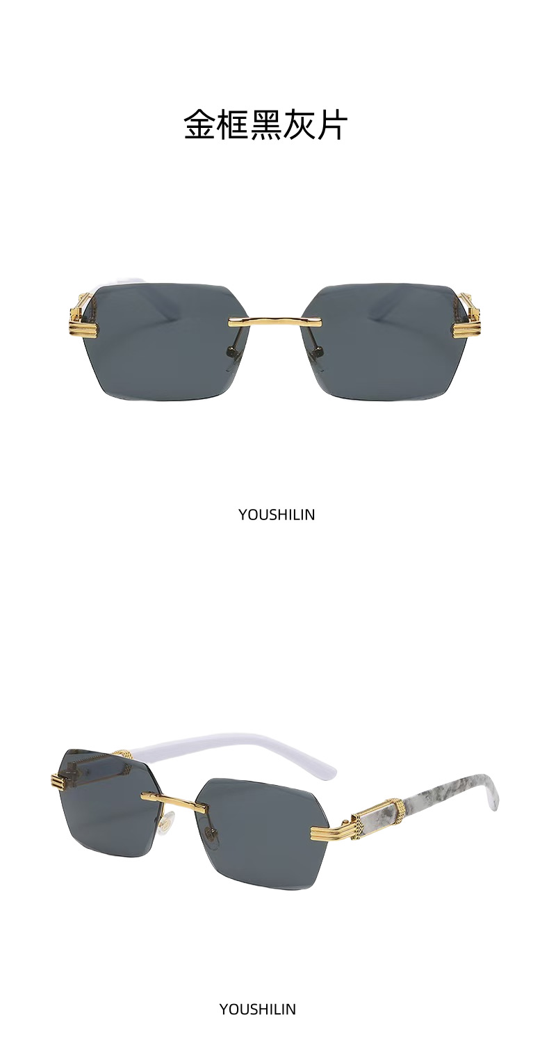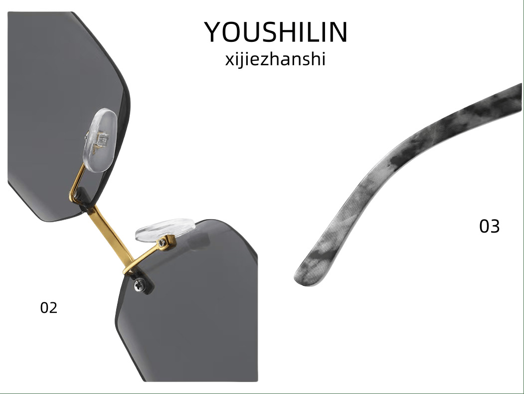 새로운 유시 유럽 및 미국 스타일 무테 절단형 그라데이션 색상 자외선 차단 선글라스 야외용 메탈 코디 선글라스스토어 가기