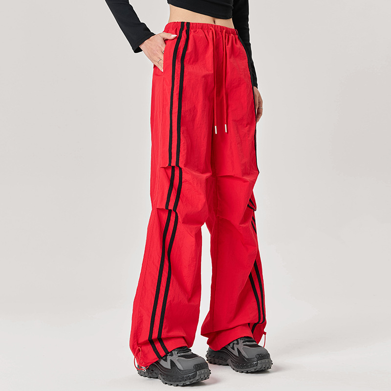 미국 레트로 낙하산 기병 바지 2025 년 여름 새로운 도착 평행선 바 주름 캐주얼 크레인 바지 충전 긴 바지스토어 가기