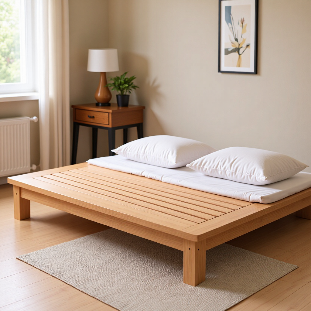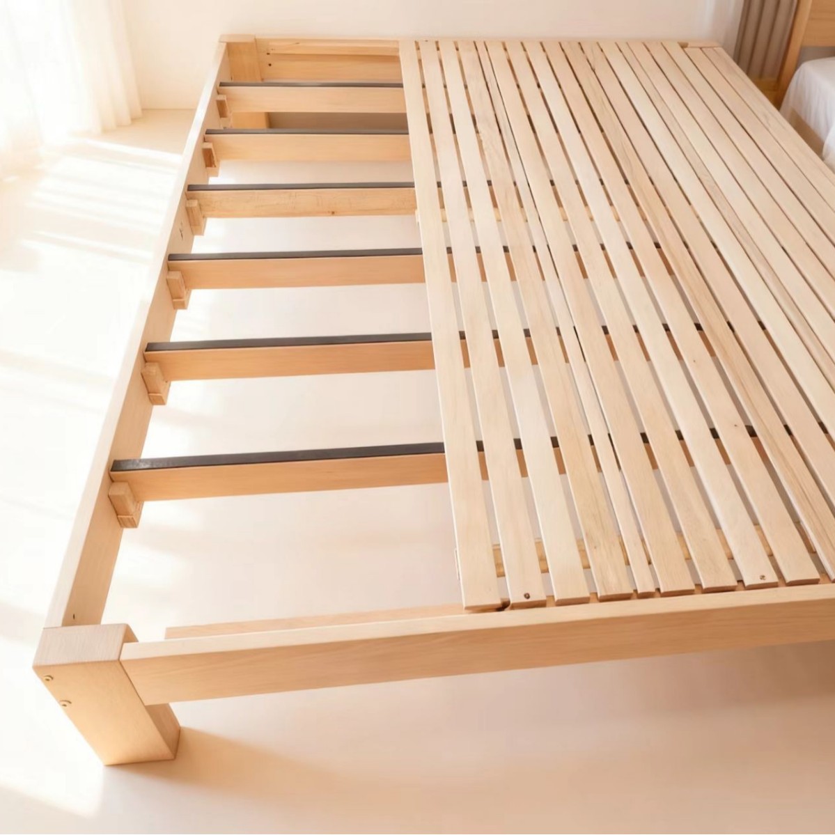 모든 너도밤나무 원목 침대 모던 심플 1.8m 더블 싱글 침대 1.15m 원목 침대 침대 헤드보드 없음