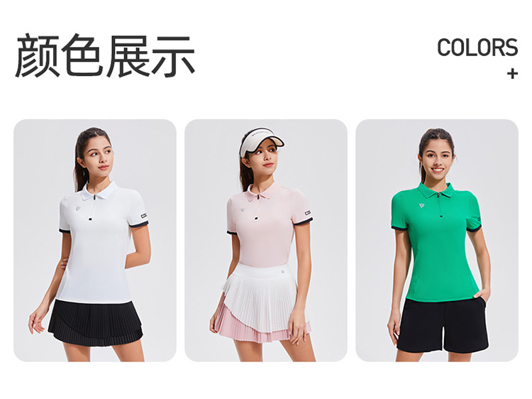 골프 의류 빠른 건조 캐주얼 여름 여성 반팔 얇은 솔리드 컬러 야외 스포츠 폴로 칼라 컬러 매칭 A056스토어 가기