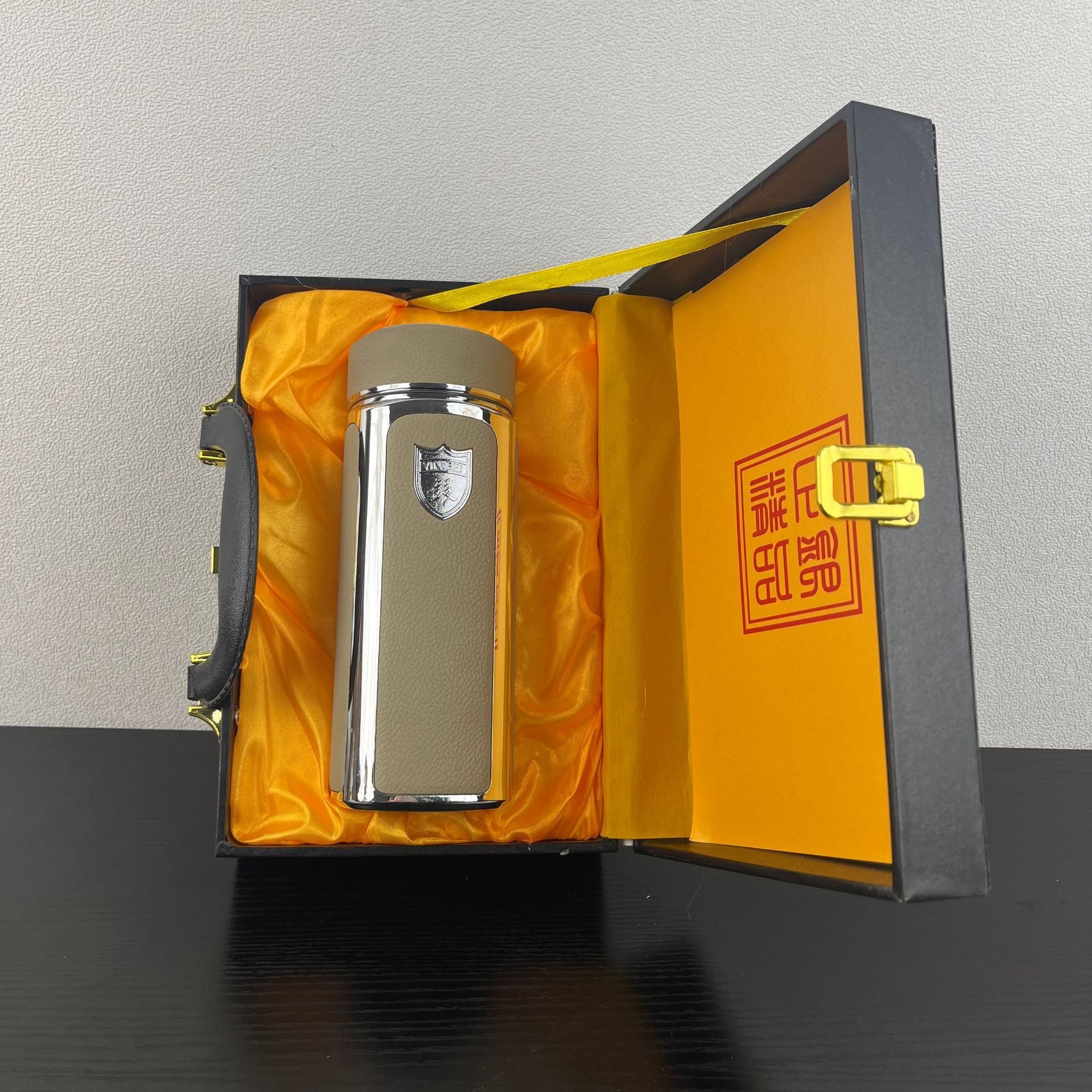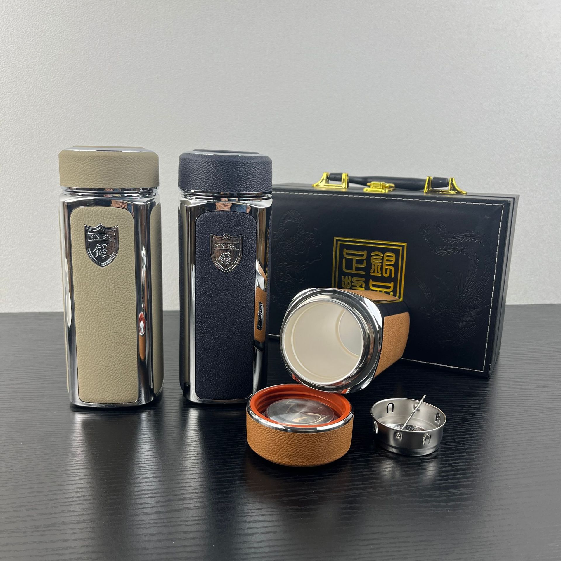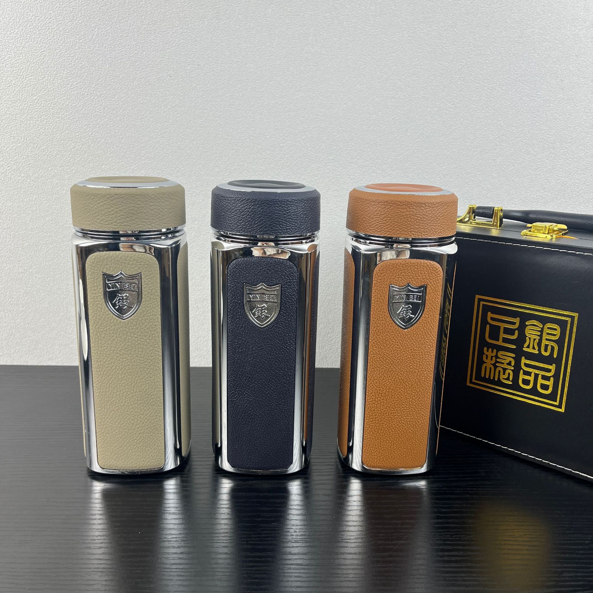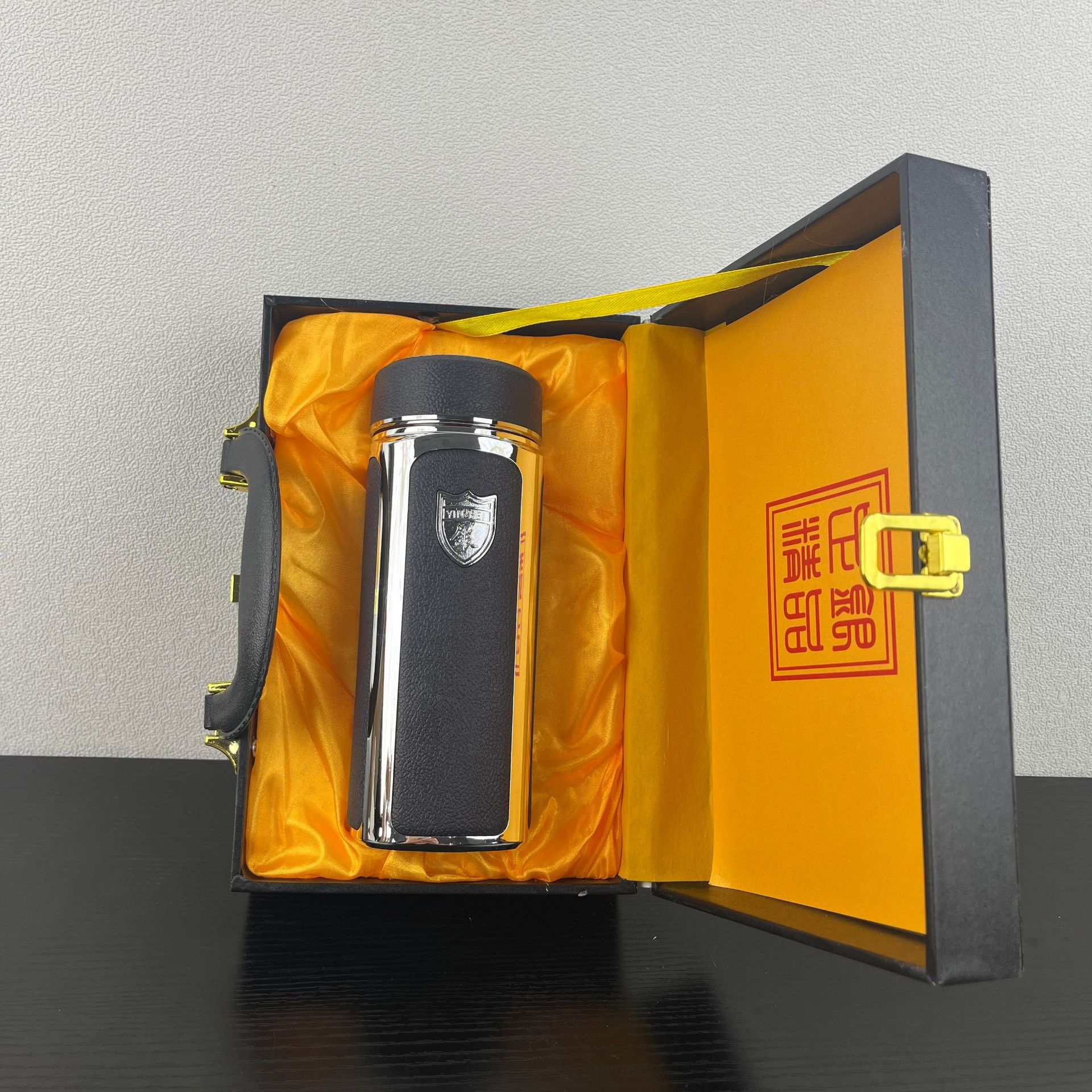 비즈니스 차량용 중국식 선물 상자 포장 사각형 가죽 무늬 은컵 은차컵 은도금 물컵 보온컵 우아한 선물 상자