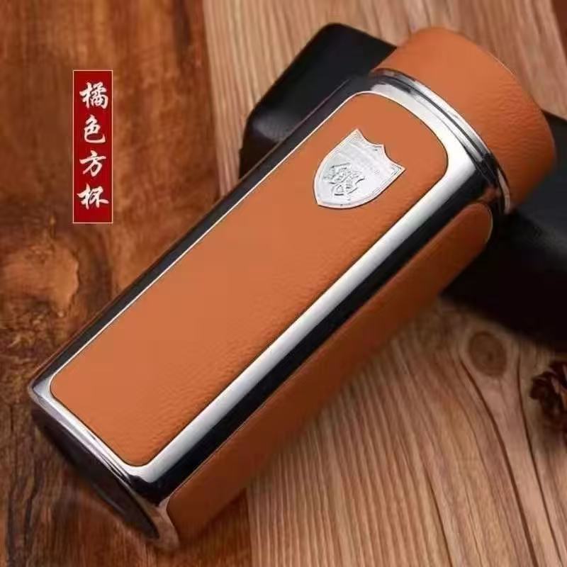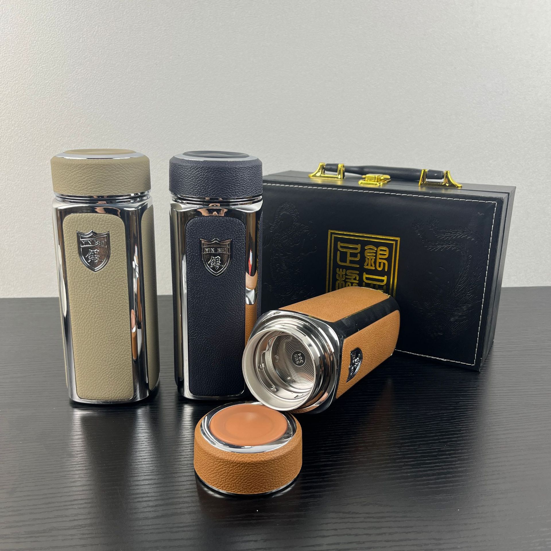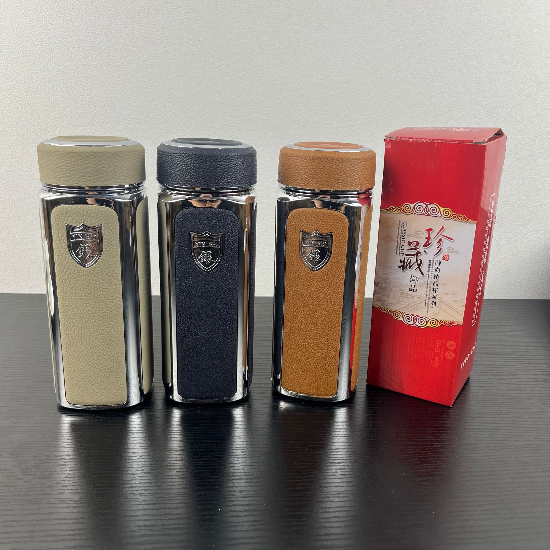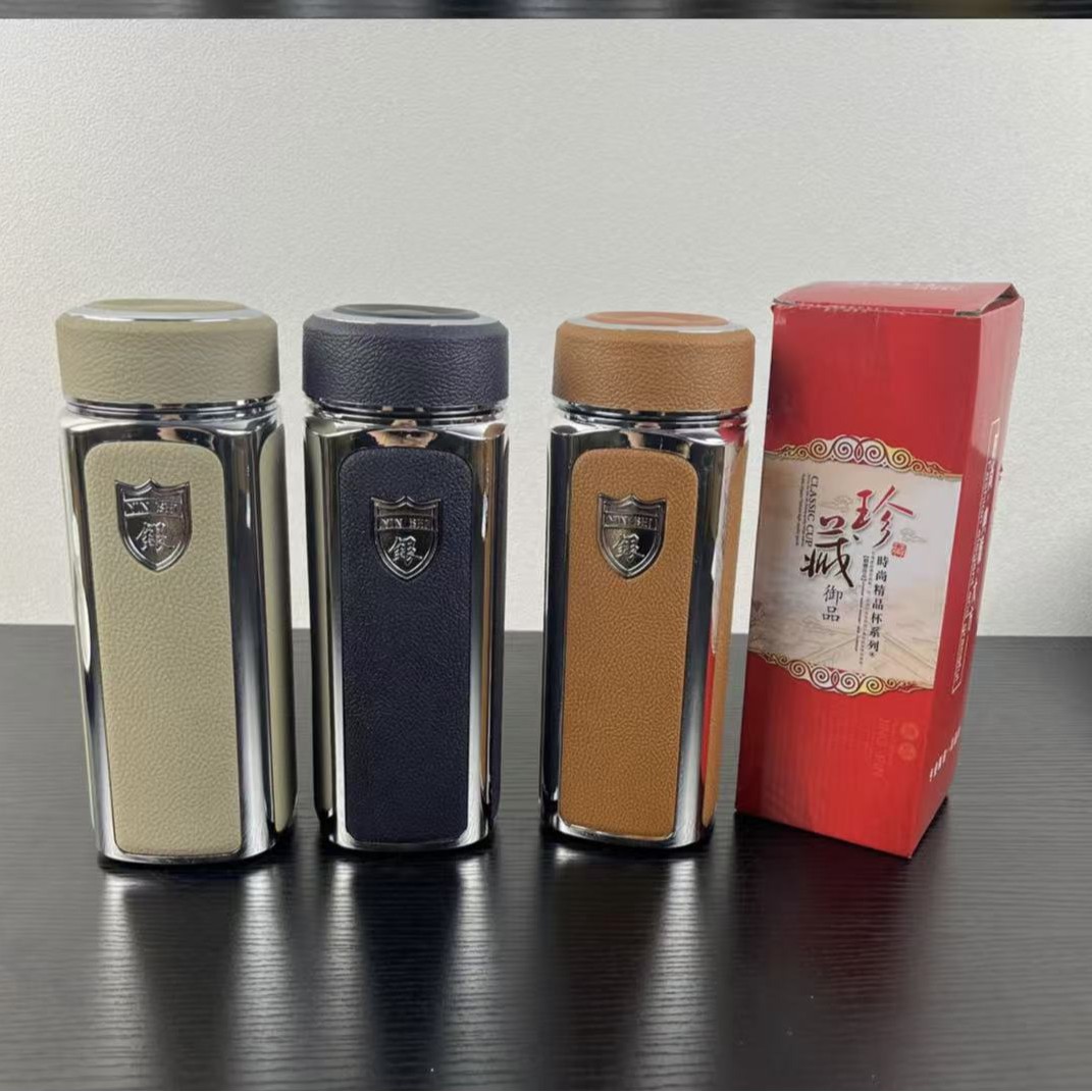 비즈니스 차량용 중국식 선물 상자 포장 사각형 가죽 무늬 은컵 은차컵 은도금 물컵 보온컵 우아한 선물 상자