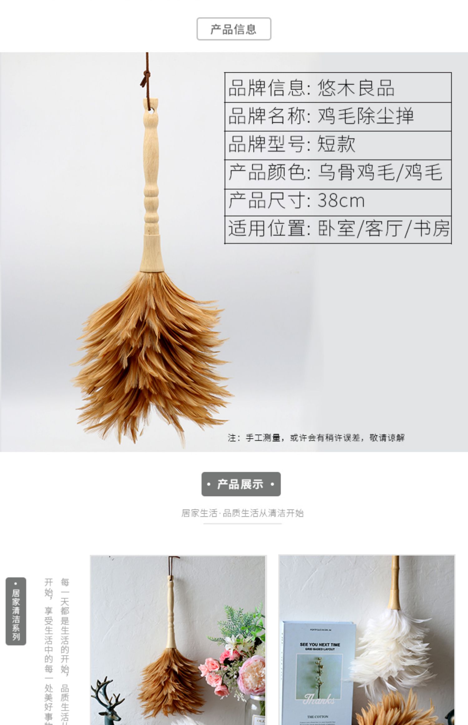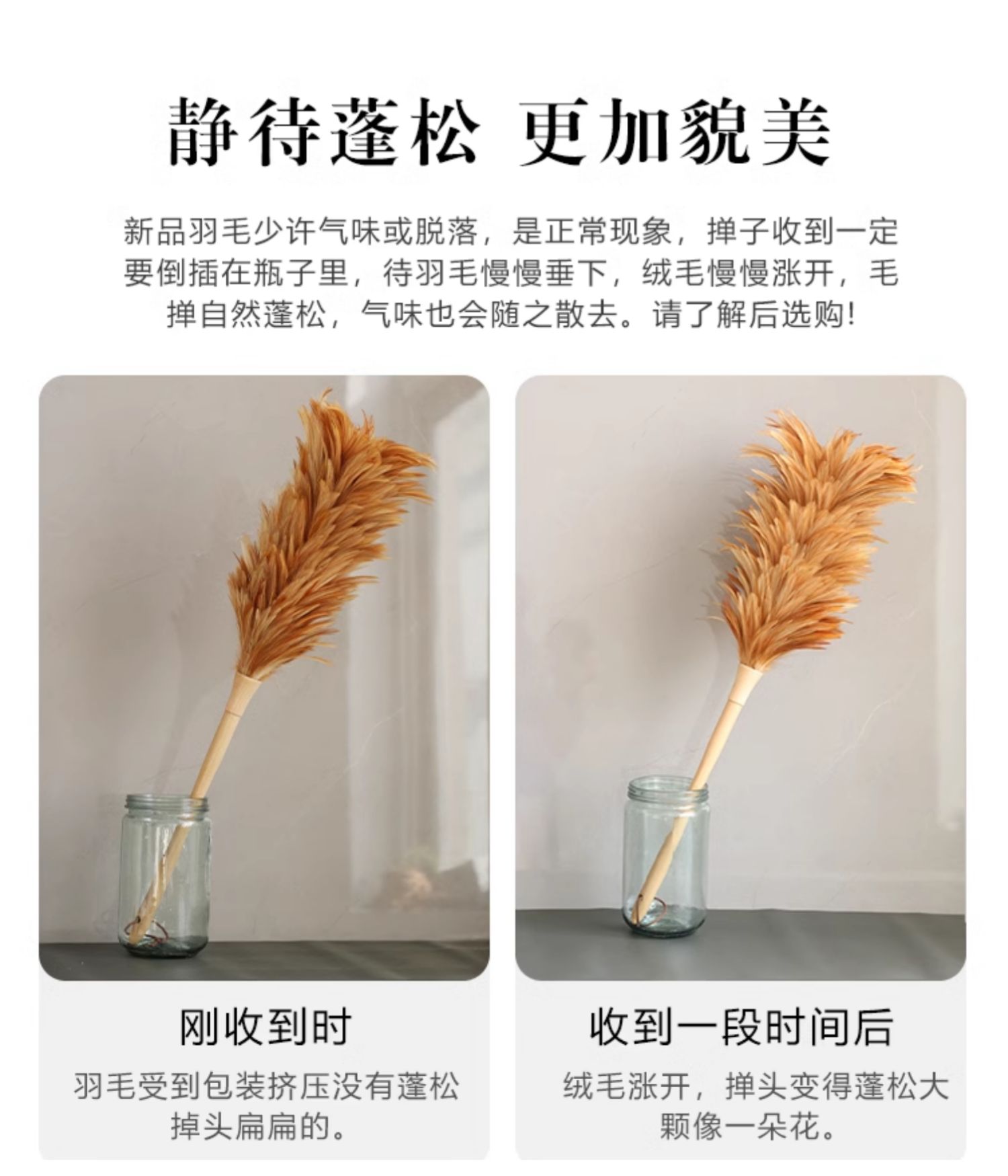 • 닭털 먼지떨이, 부드러운 깃털로 매우 부드럽습니다.