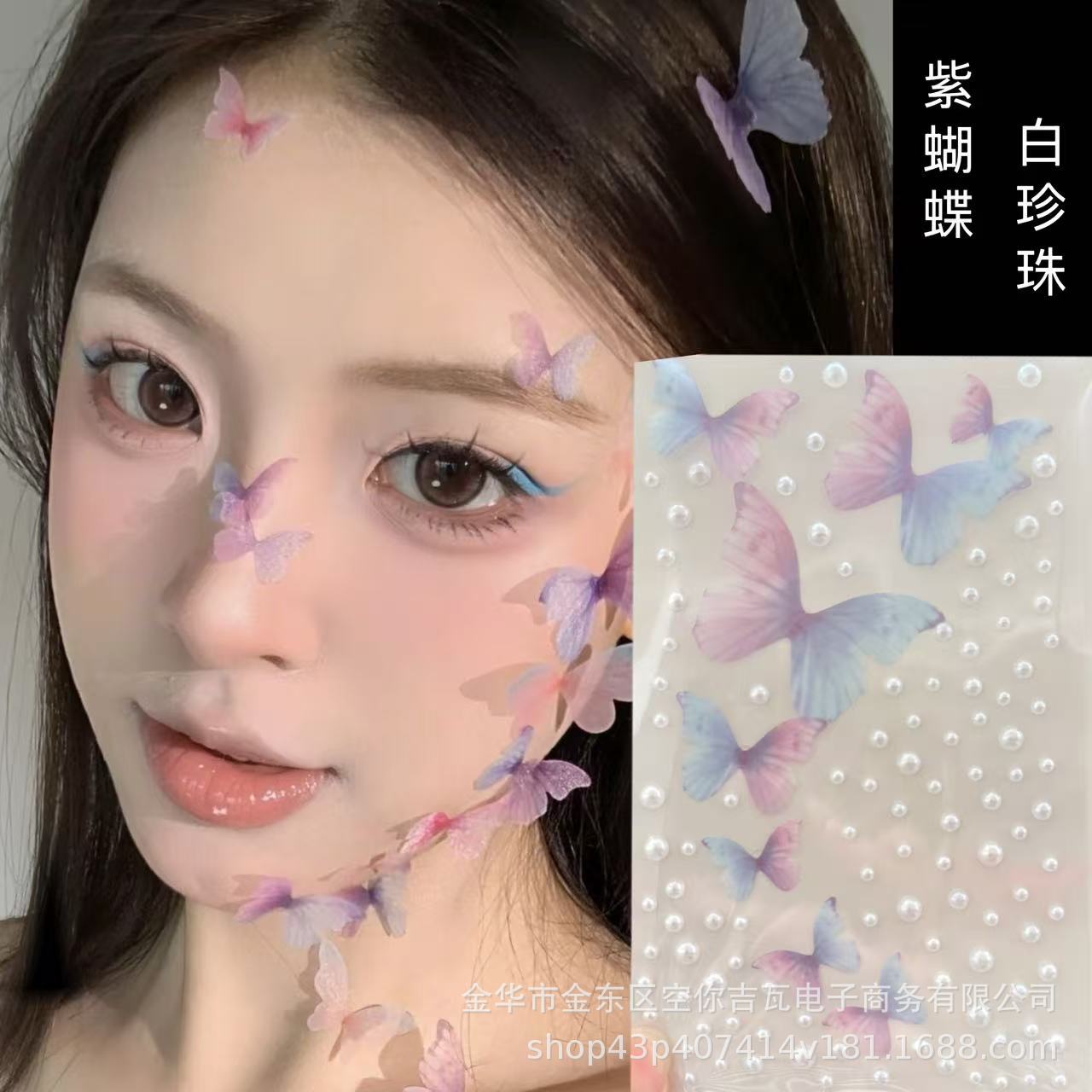 Tulle 나비 패치 얼굴 장식 스테레오 도매 핑크 나비 봄 메이크업 패치 사진 얼굴 패치 아이 메이크업 패치 장식스토어 가기