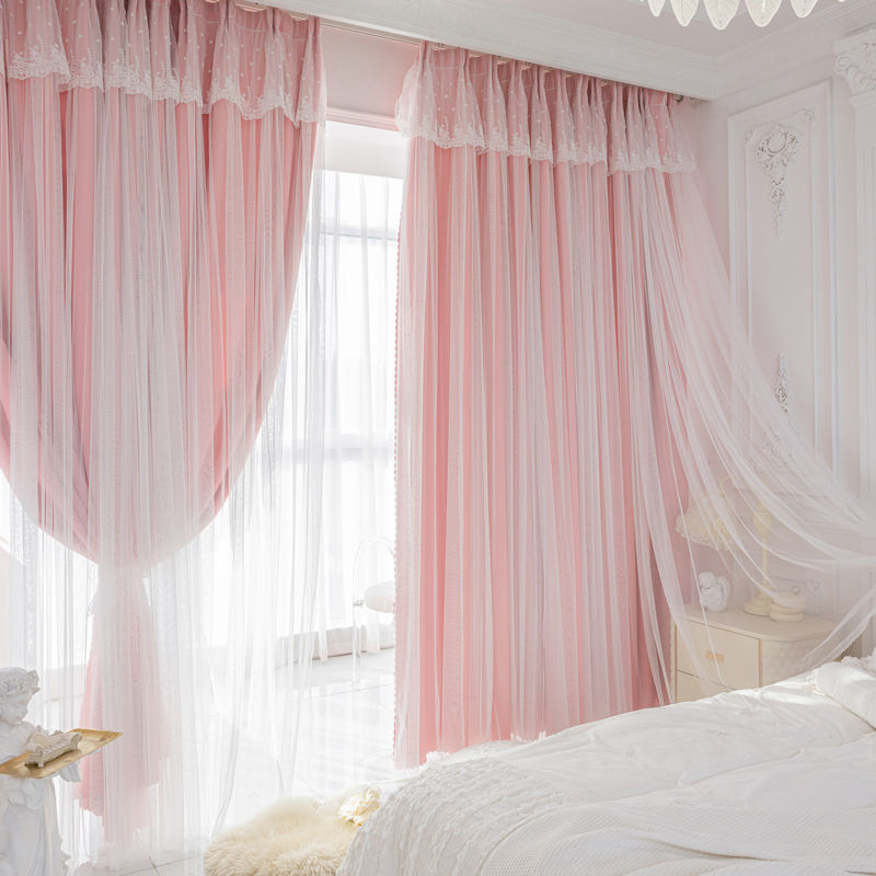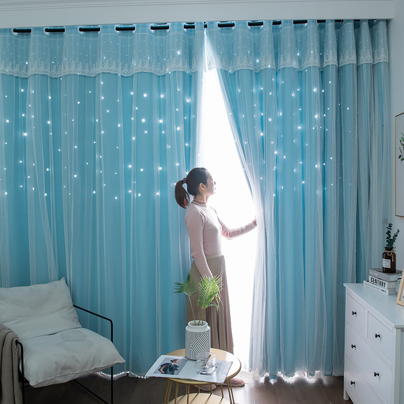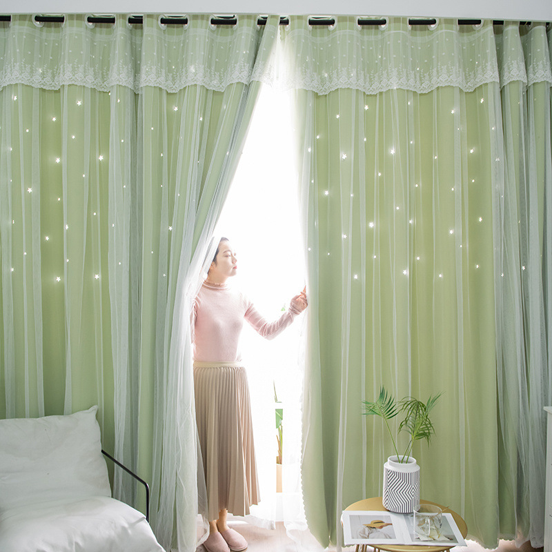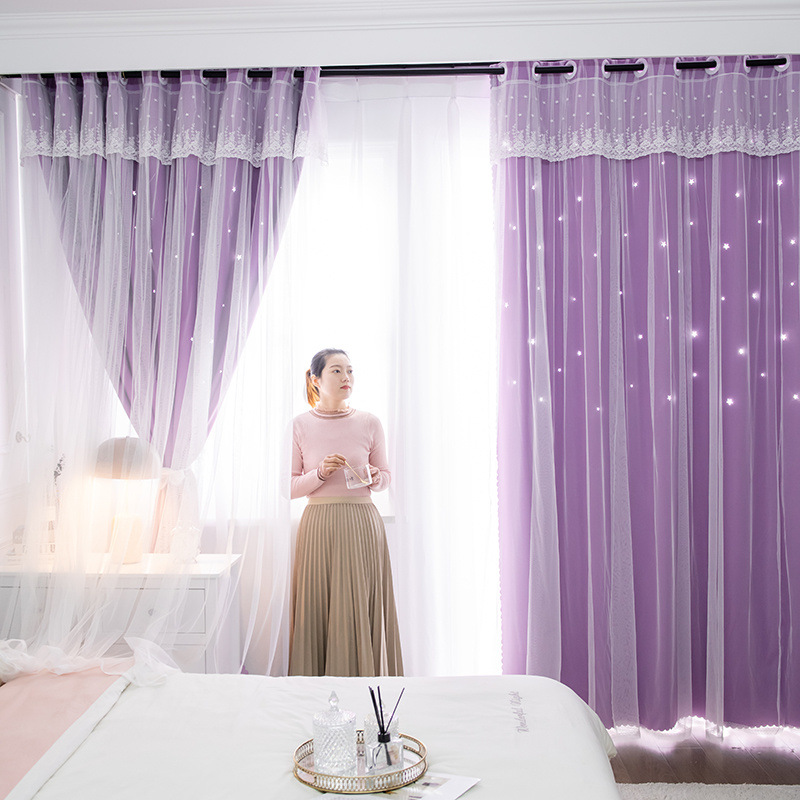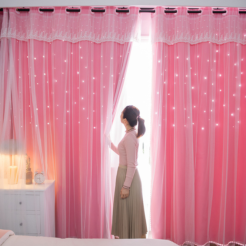 이중 레이어 거즈 커튼 새로운 중공 스타 레이스 인터넷 연예인 별이 빛나는 하늘 천 여자 침실 공주 스타일 빛 차단스토어 가기