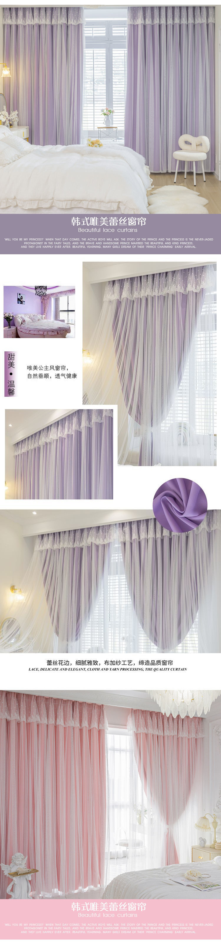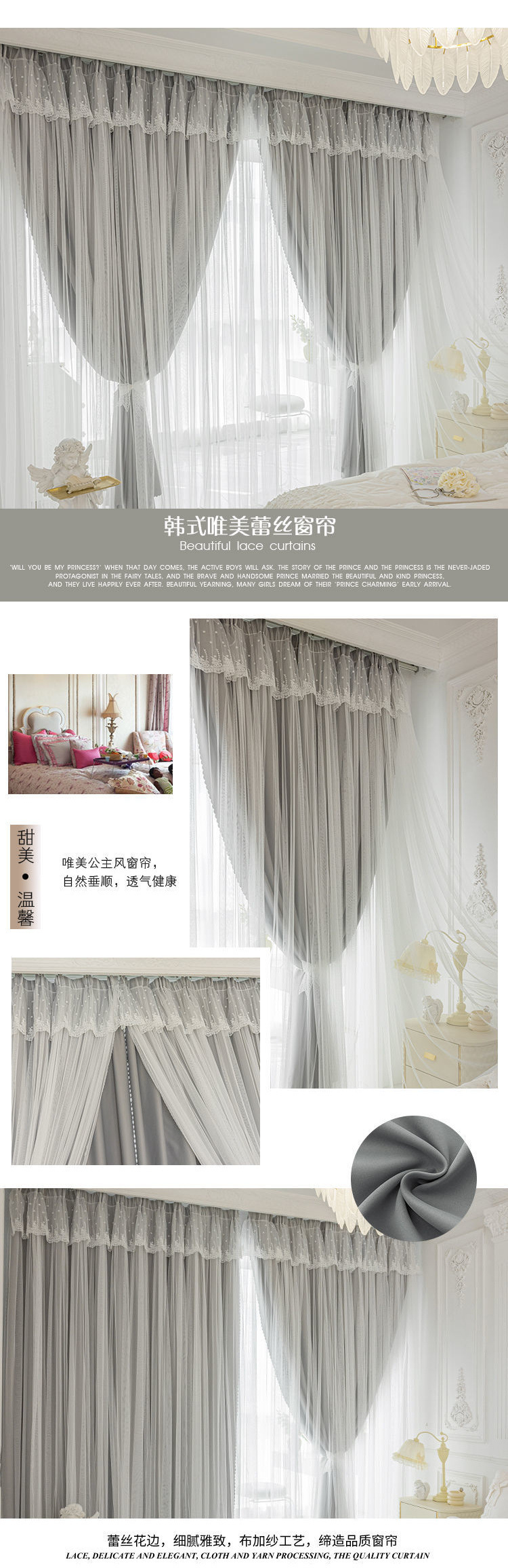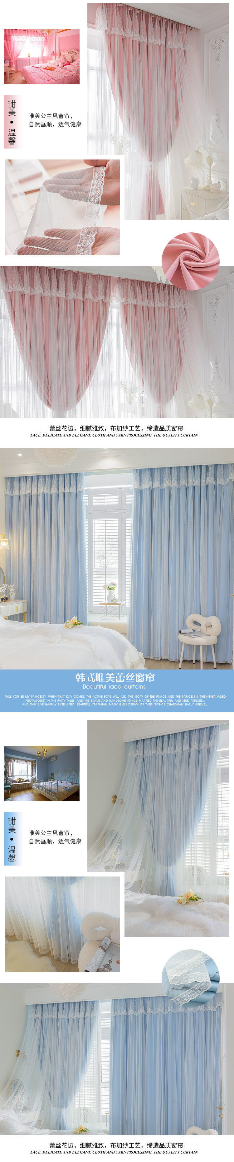 이중 레이어 거즈 커튼 새로운 중공 스타 레이스 인터넷 연예인 별이 빛나는 하늘 천 여자 침실 공주 스타일 빛 차단스토어 가기