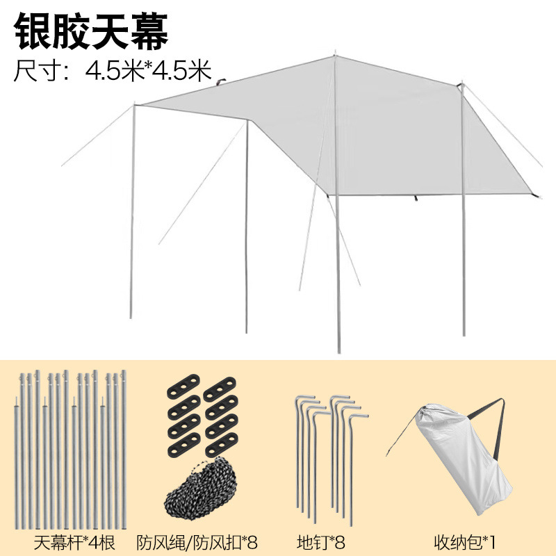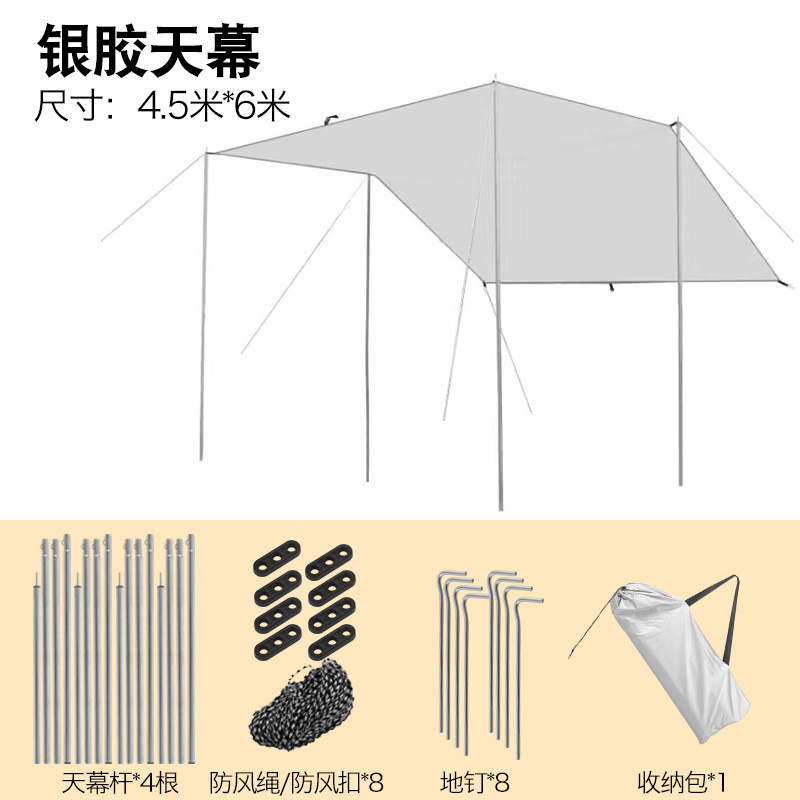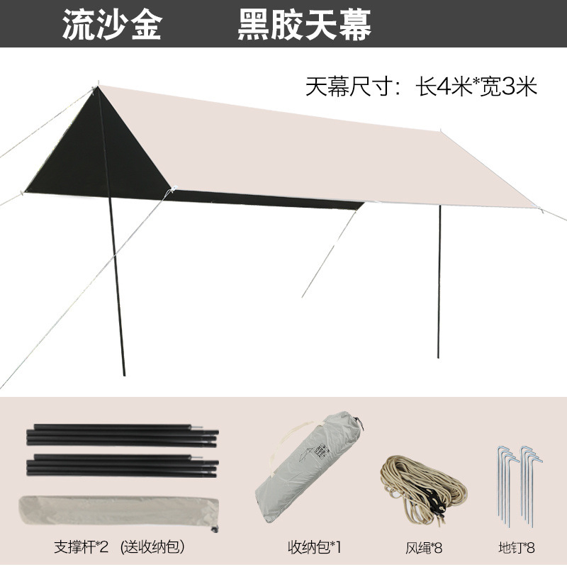 캐노피 블랙 고무 텐트 야외 캠핑 차양 휴대용 자외선 차단제 야외 캐노피 천 실버 코팅 두꺼운 커튼