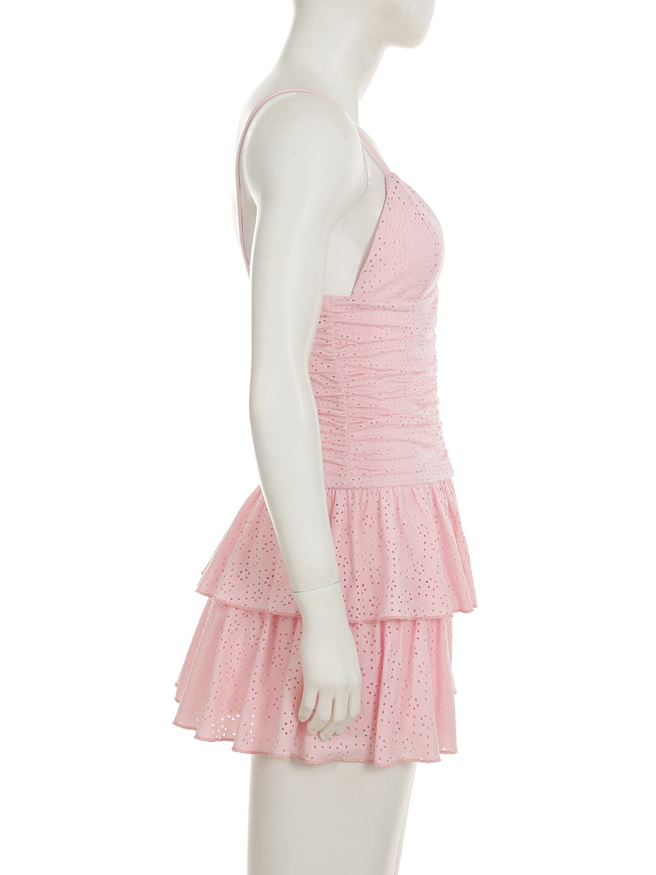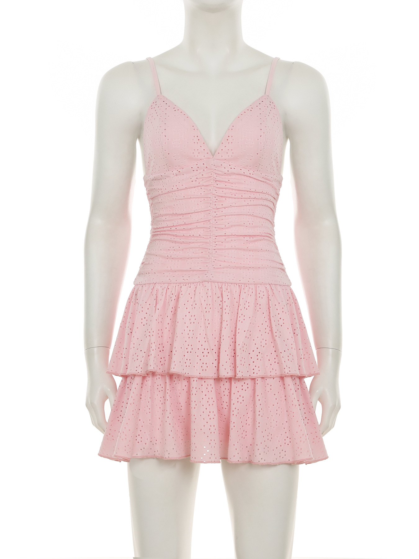 프랑스 달콤한 핑크 깊은 V-Neck 슬링 원피스 뜨거운 소녀 Pleated 허리 올 매치 케이크 원피스 잊어 버린 사랑의 천스토어 가기