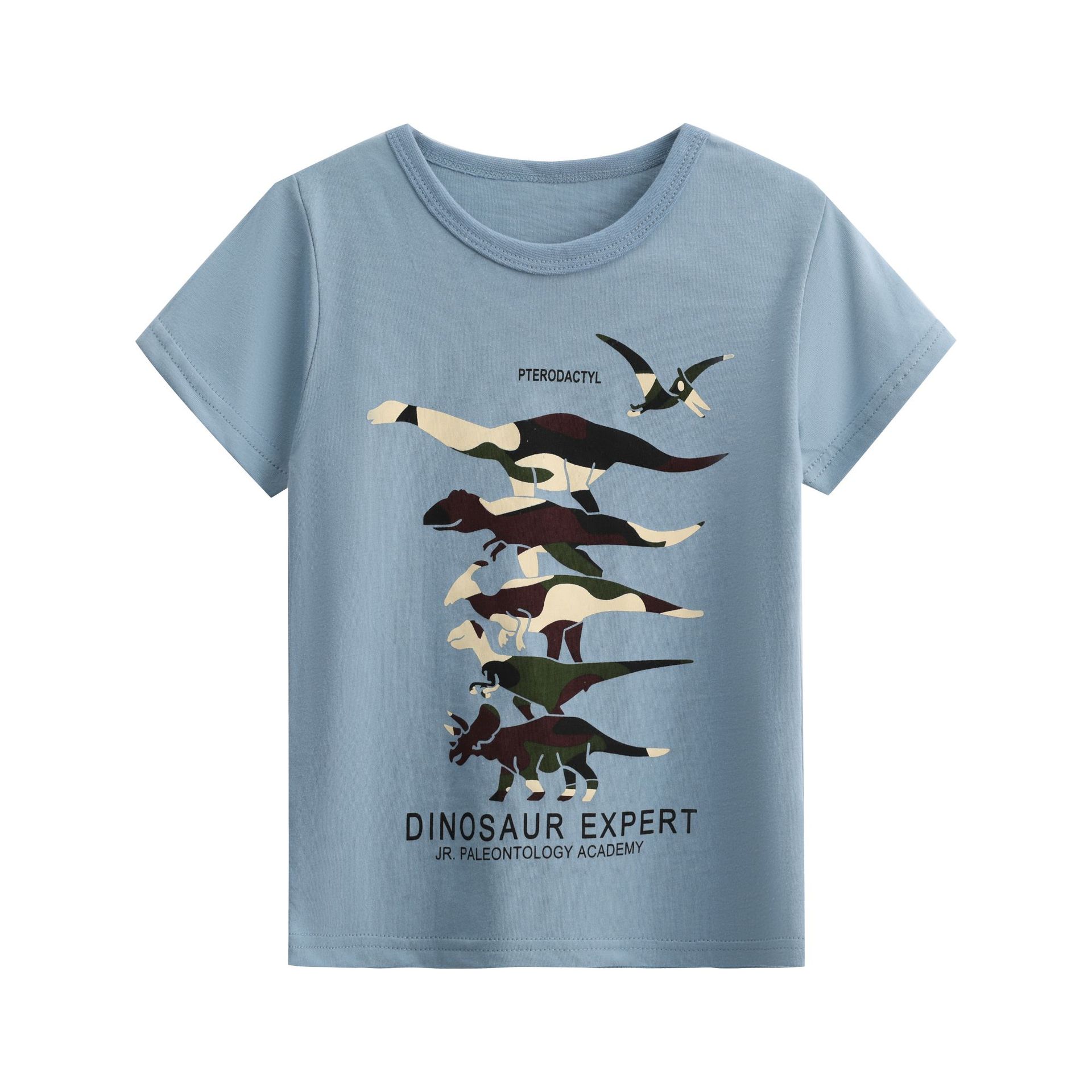 25 여름 소년 유럽과 미국 스타일 작은 공룡 최고 어린이 클래스 면화 짧은 소매 티셔츠 국경 공장 도매스토어 가기