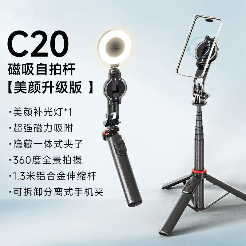 C20 알루미늄 합금 삼각대 휴대 전화 자기 흡입 라이브 촬영 여행 휴대용 카메라 유물 셀카 스틱 흔들림 방지스토어 가기