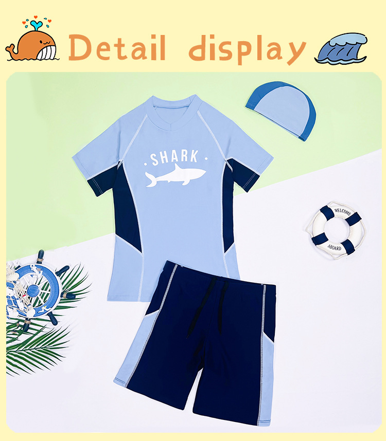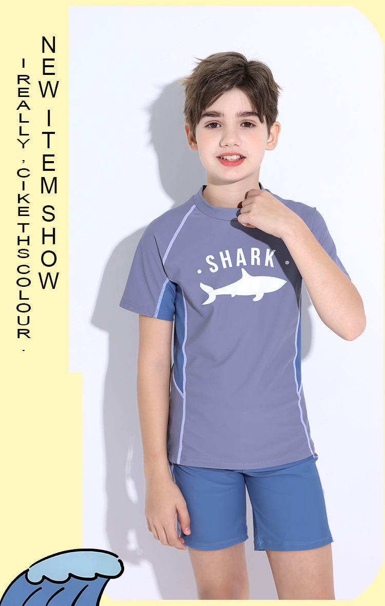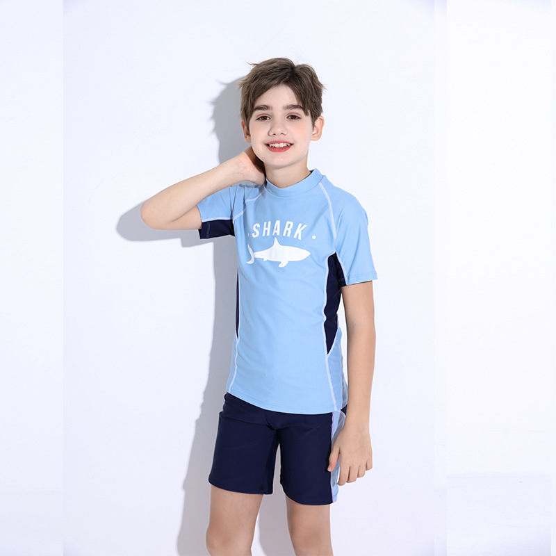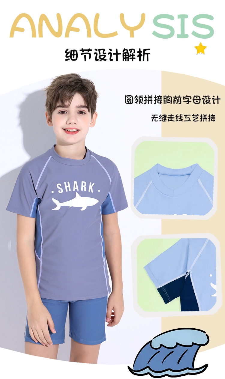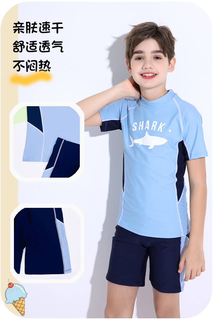 어린이 수영복 소년 2025 새로운 반팔 스플릿 보수적 중대형 어린이 학생 스포츠 훈련 소년 수영복