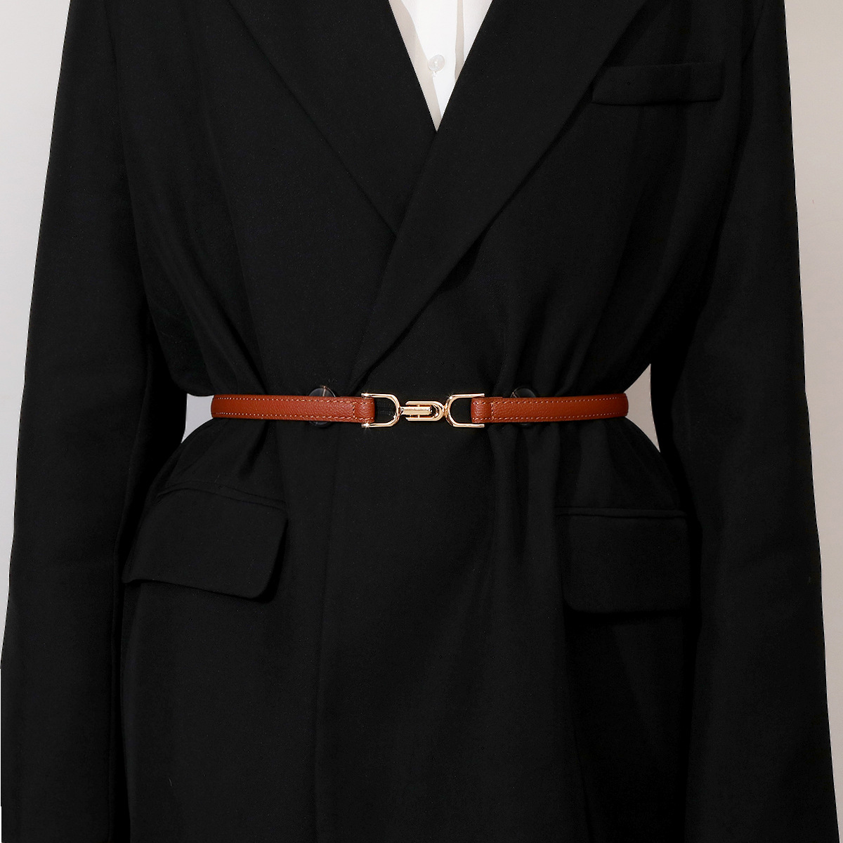 새로운 스타일의 여성용 버클 조절, 심플하고 패셔너블하며 다재다능하고 우아한 드레스, 정장 장식, 작은 가죽 벨트 및 벨트 도매