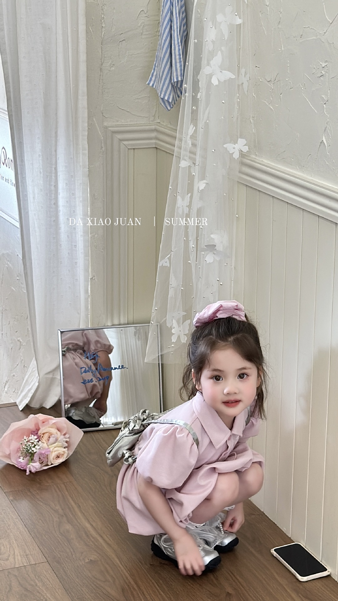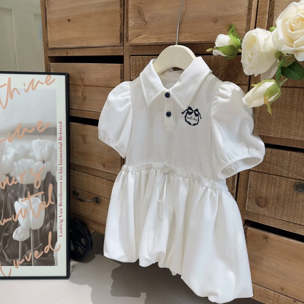 [크기 볼륨] 어린이 여름 폴로 칼라 원피스 허리 꽃 봉오리 스커트-52343