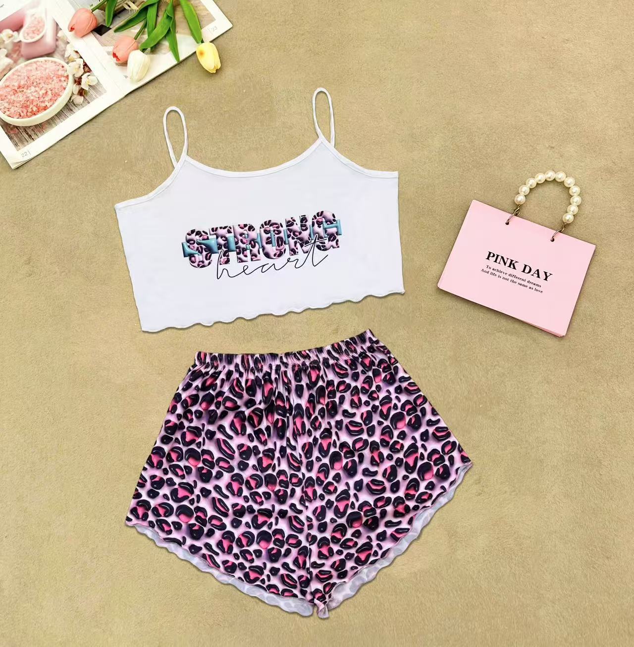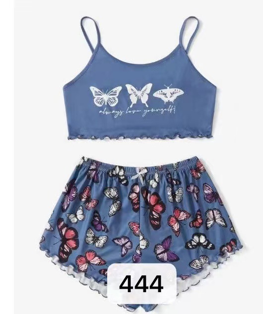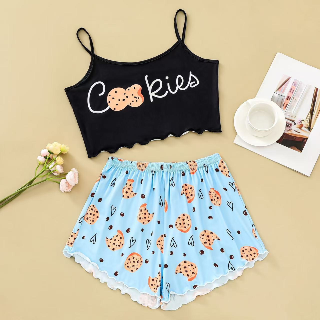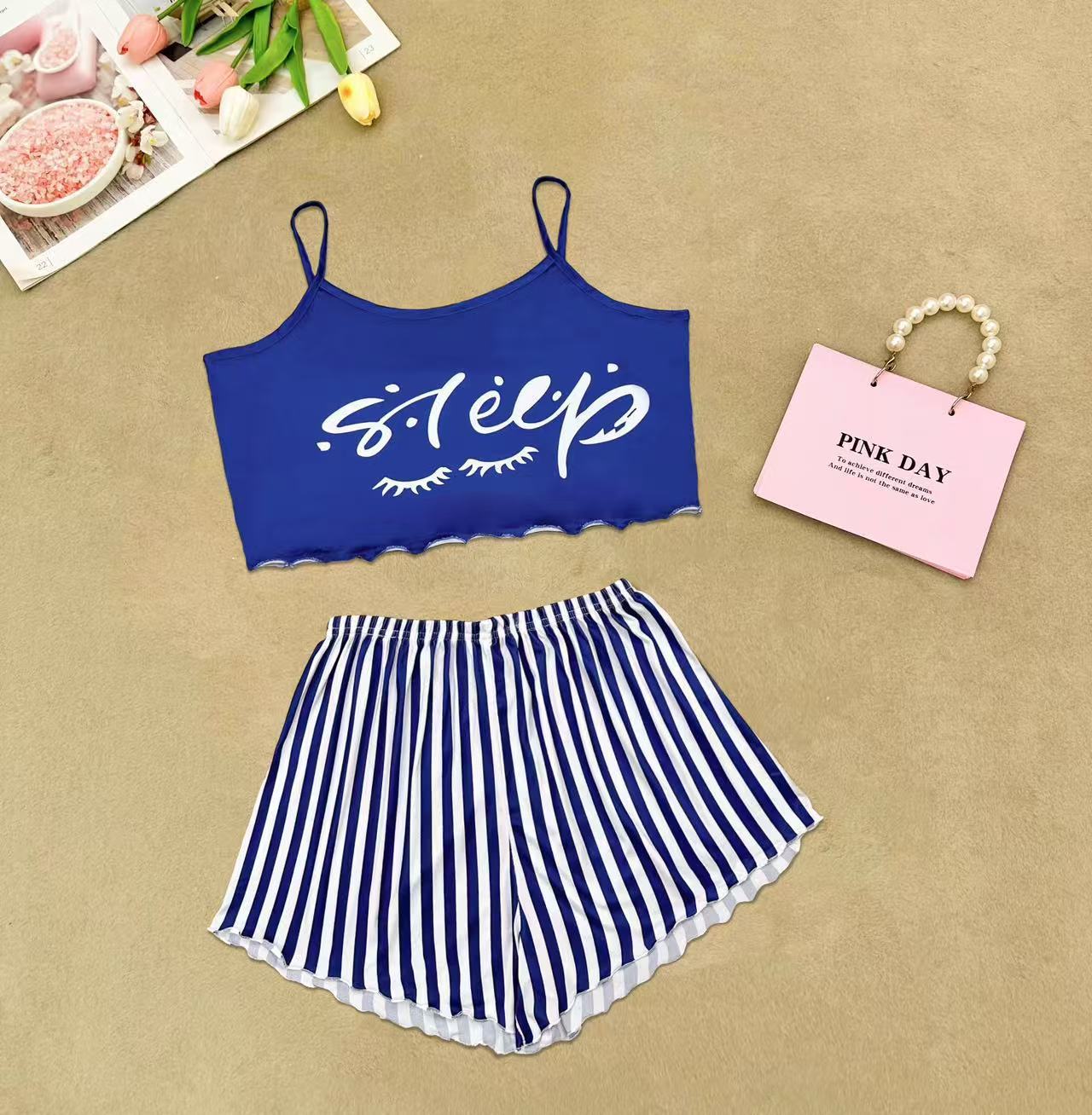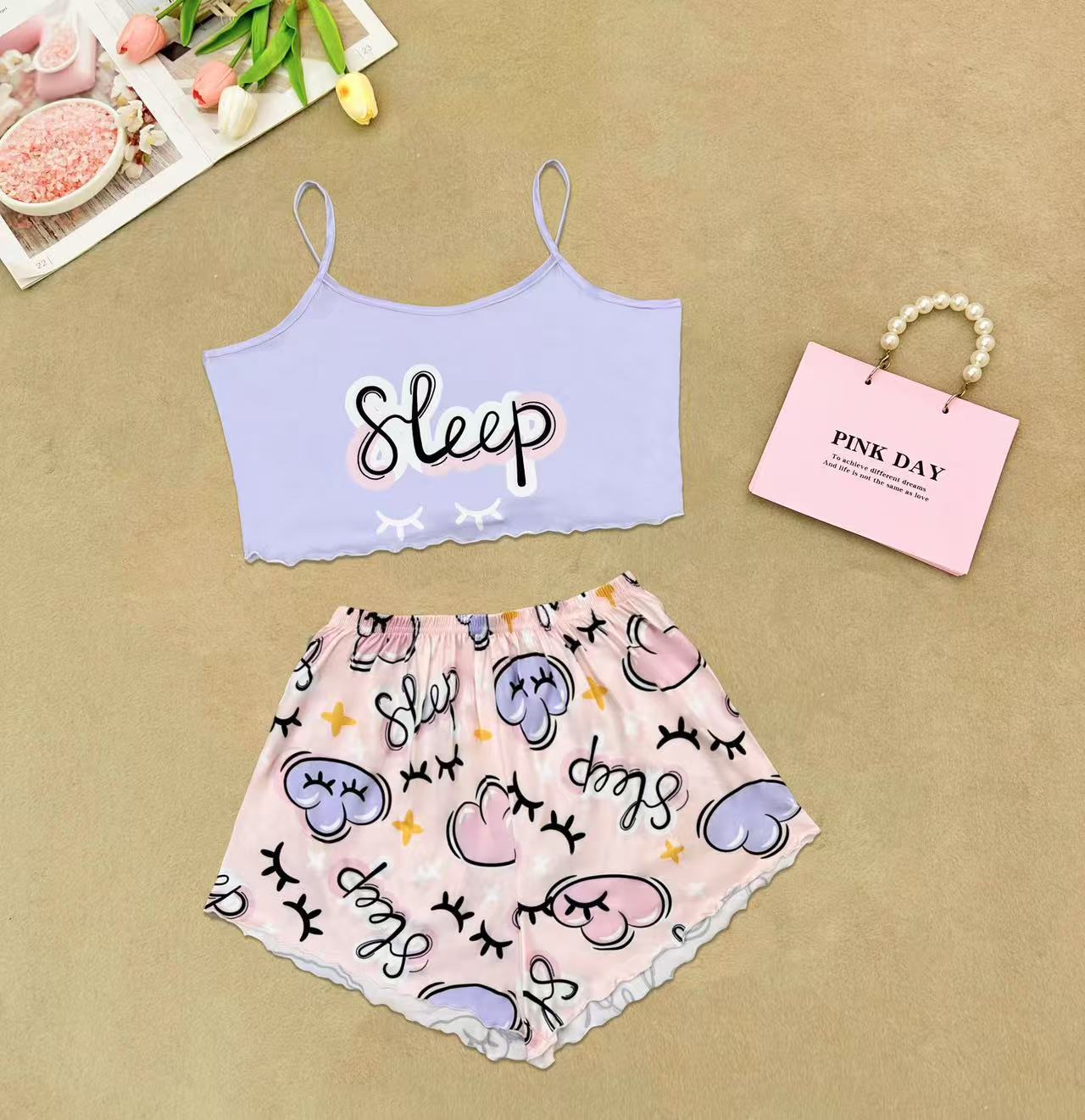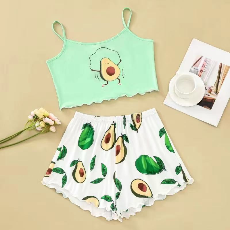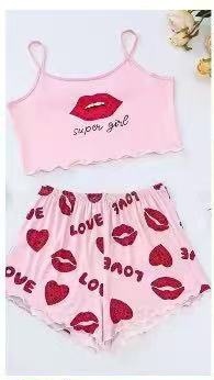 여성을위한 국경 간 대외 무역 서스펜더 잠옷 여름 얇은 달콤한 투피스 양복 여름 섹시한 조끼 느슨한 가정 의류