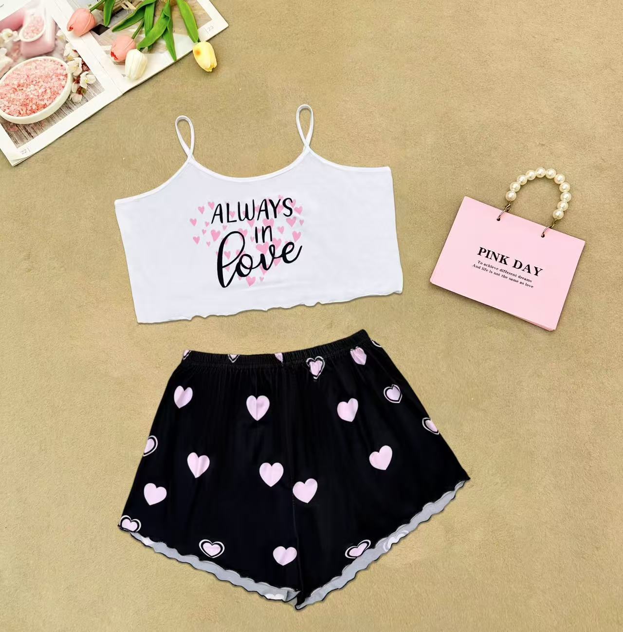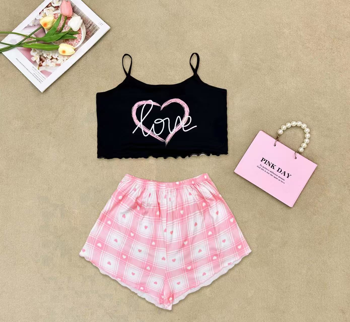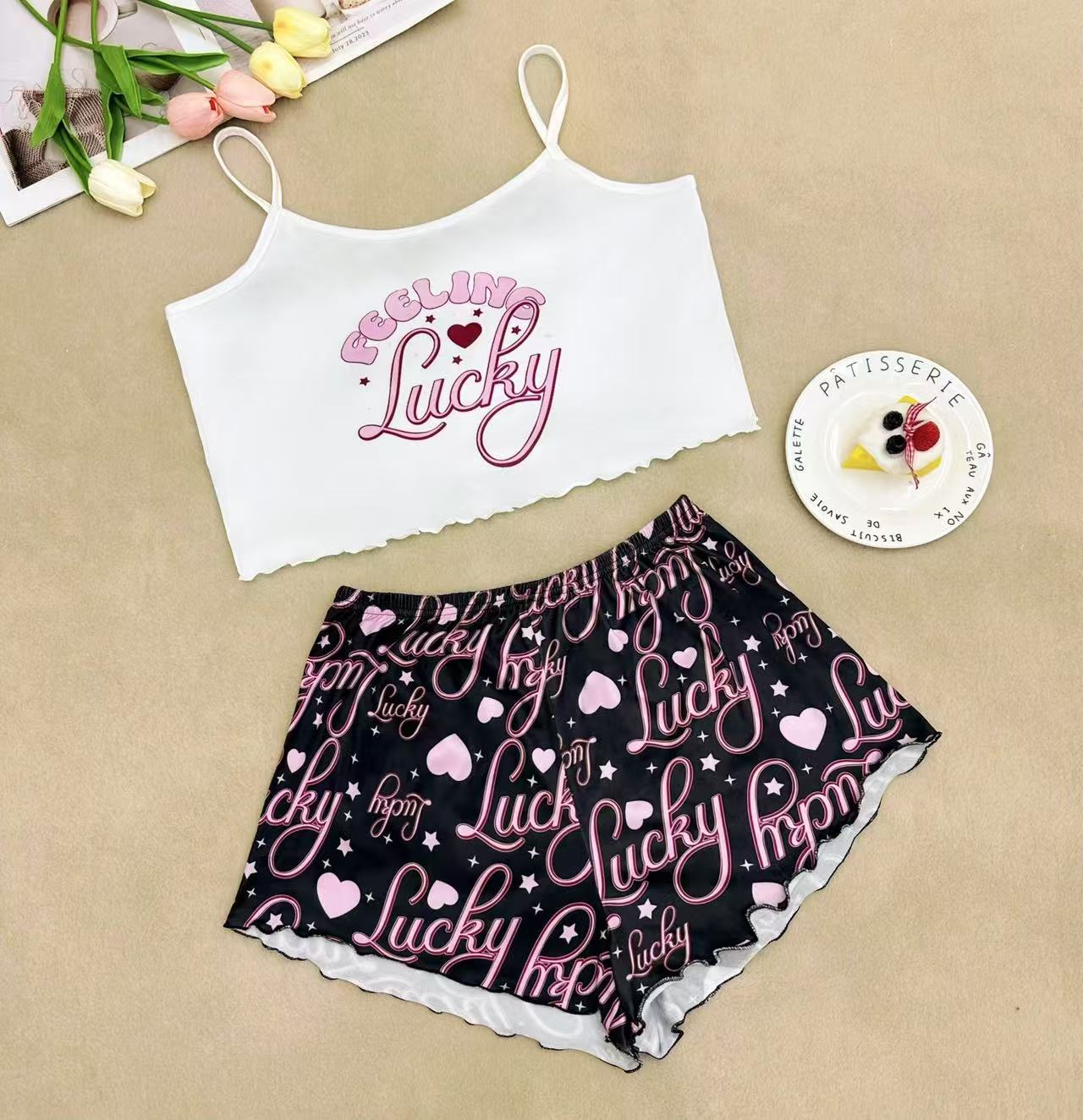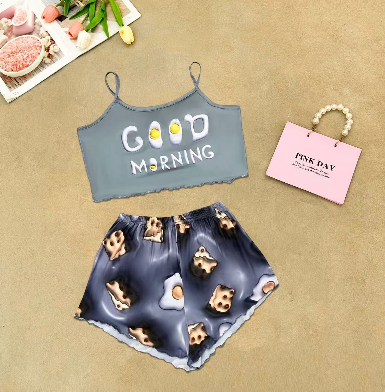 여성을위한 국경 간 대외 무역 서스펜더 잠옷 여름 얇은 달콤한 투피스 양복 여름 섹시한 조끼 느슨한 가정 의류