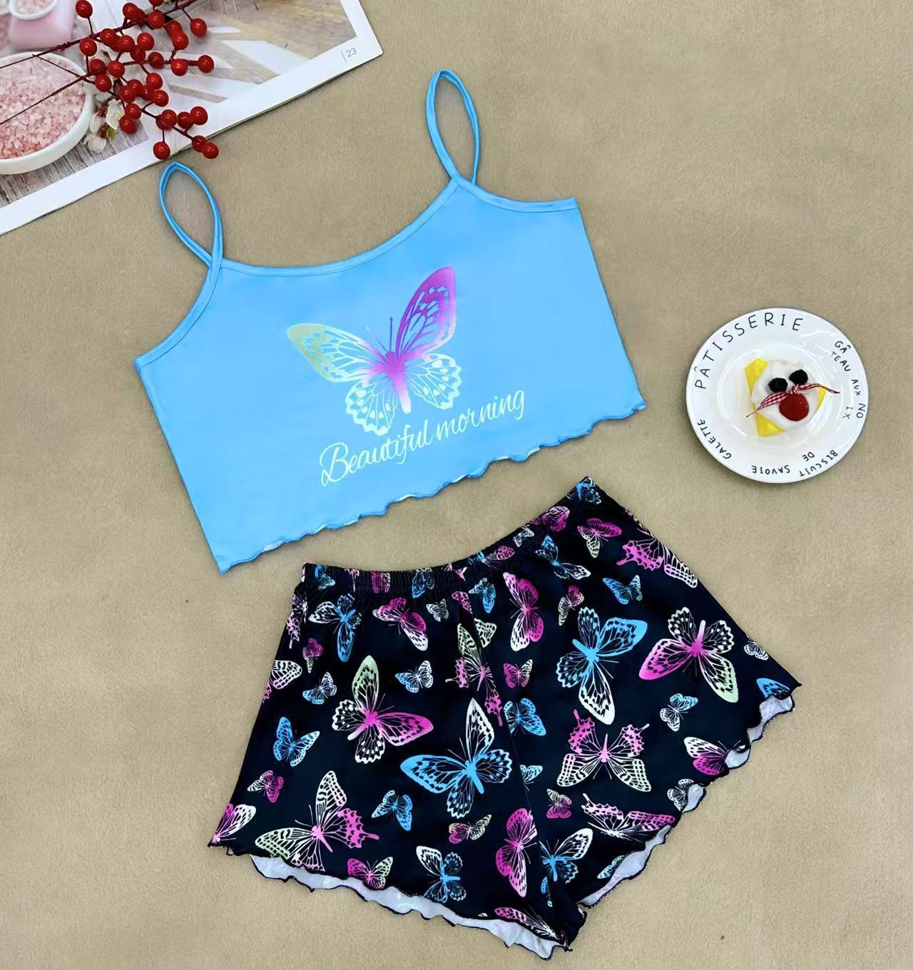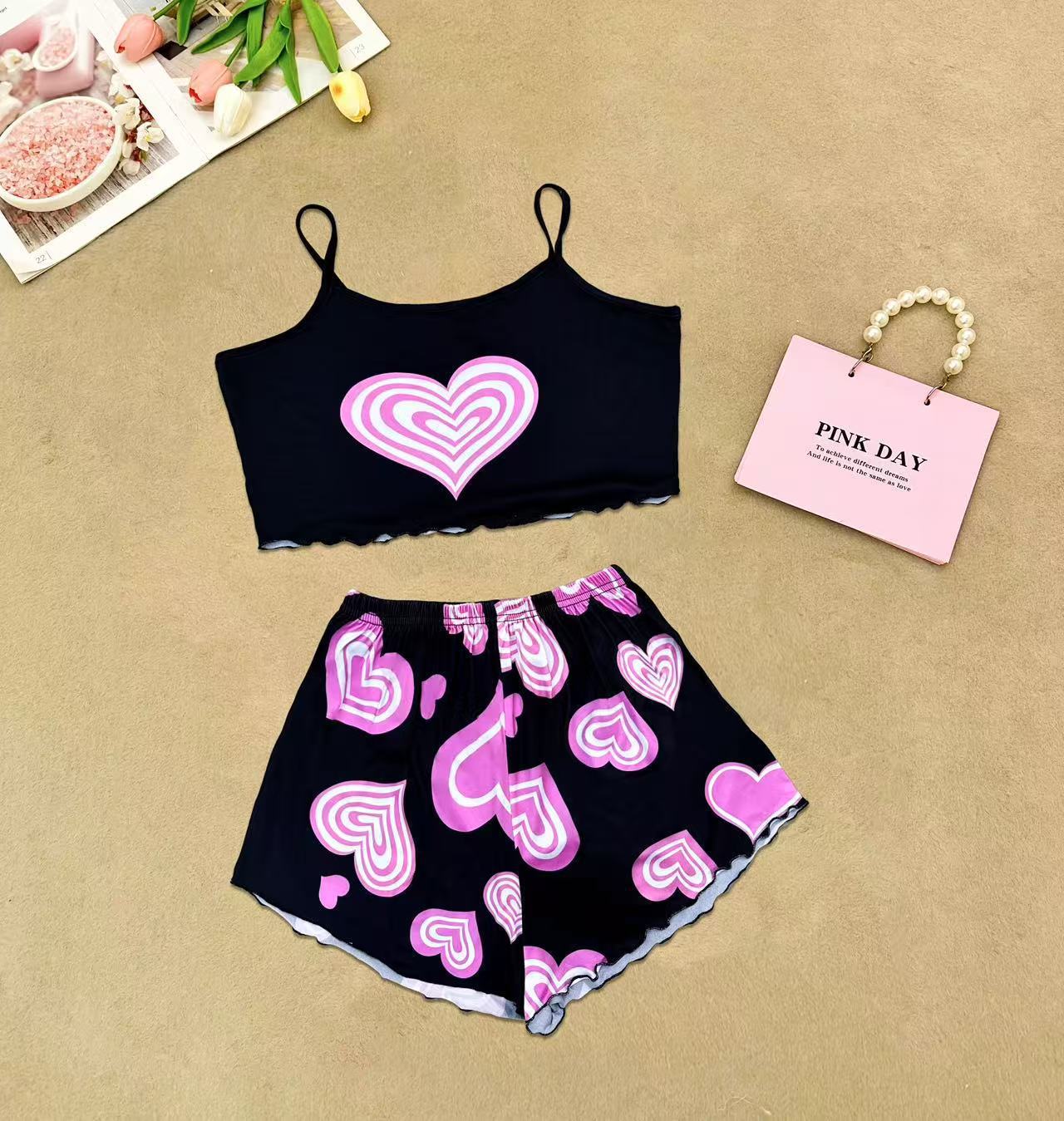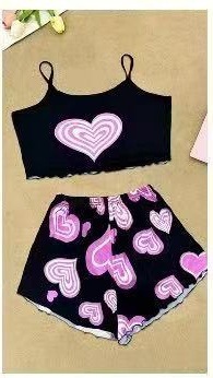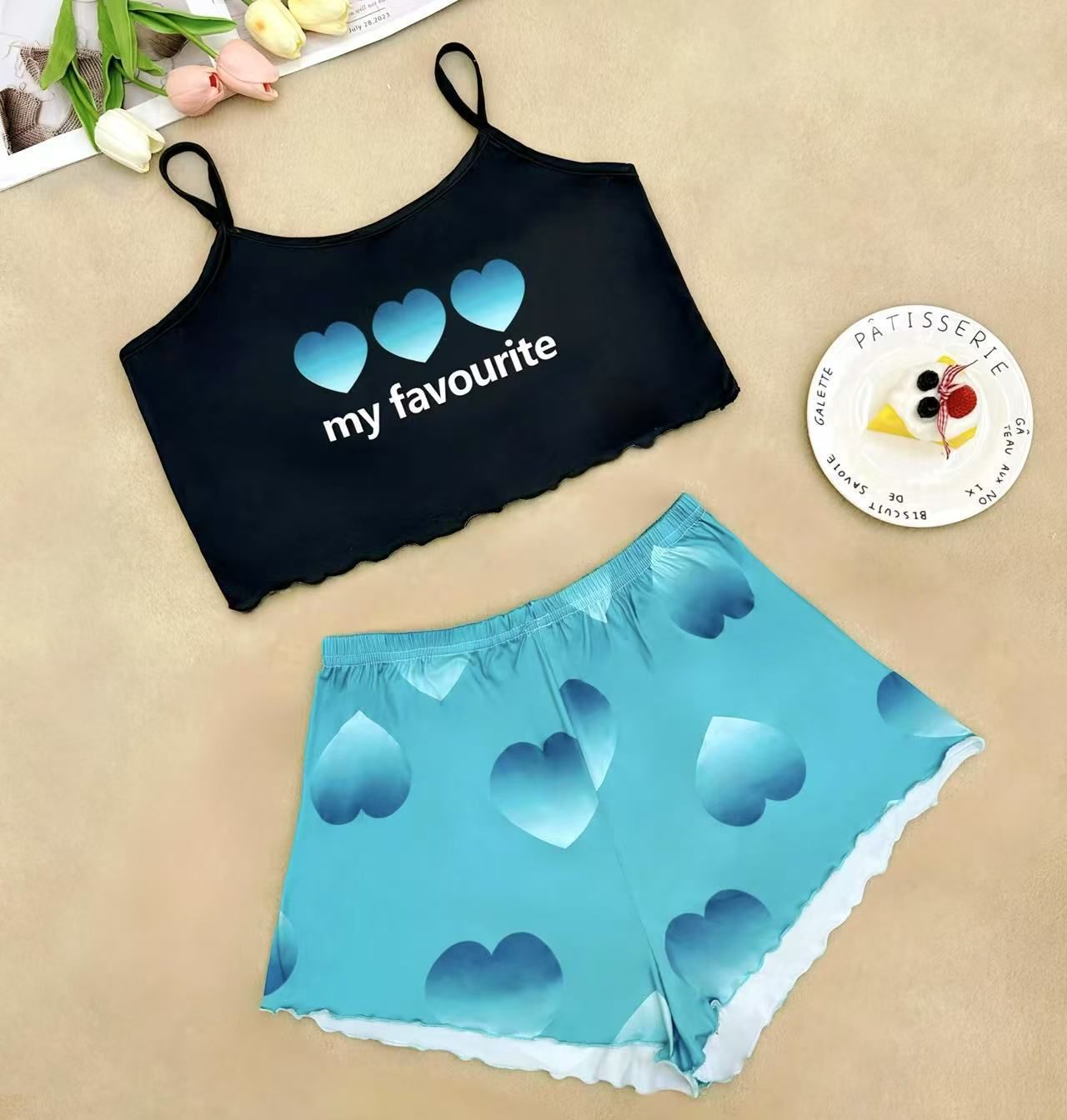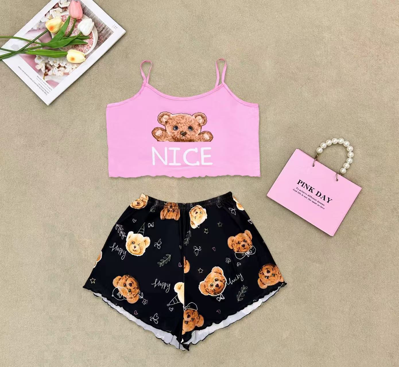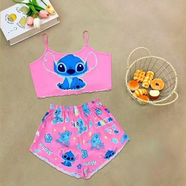 여성을위한 국경 간 대외 무역 서스펜더 잠옷 여름 얇은 달콤한 투피스 양복 여름 섹시한 조끼 느슨한 가정 의류